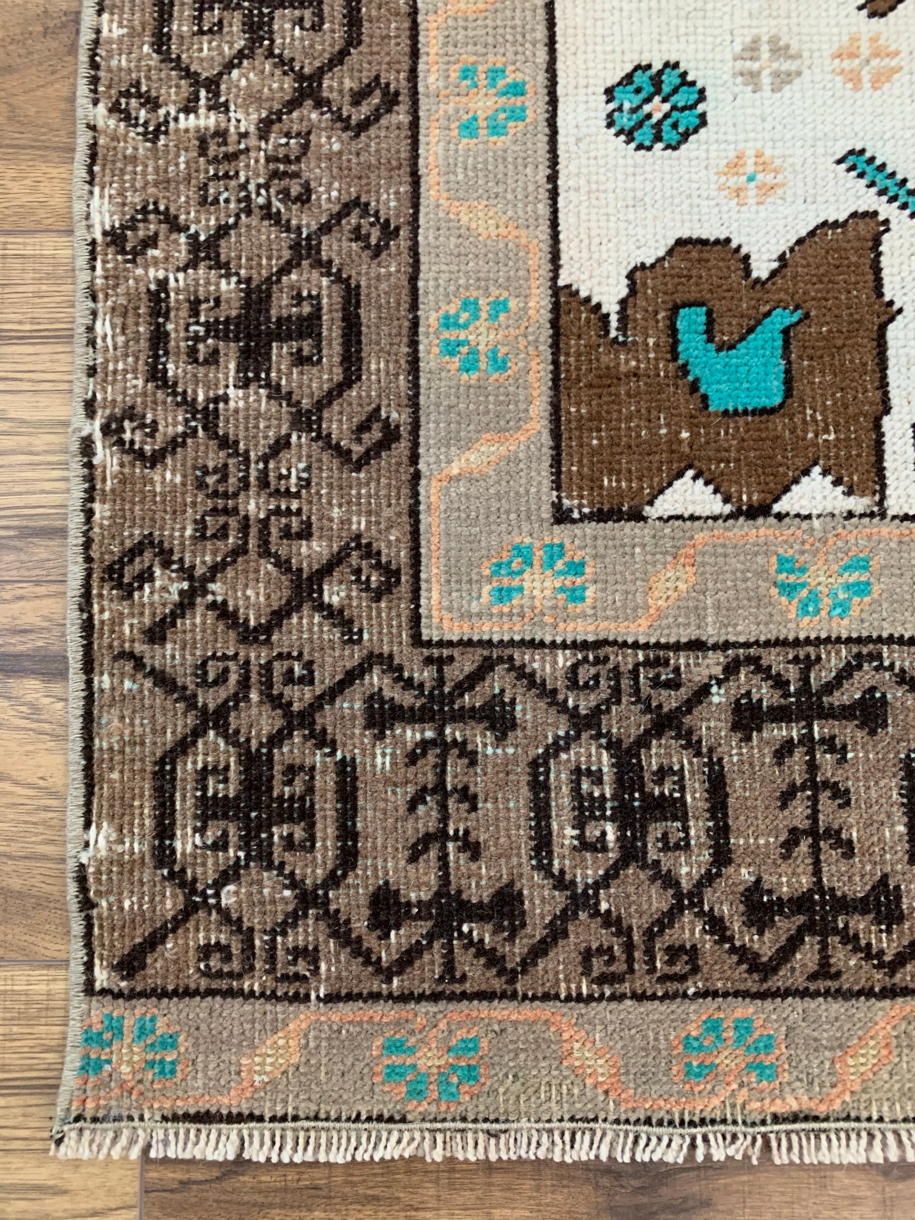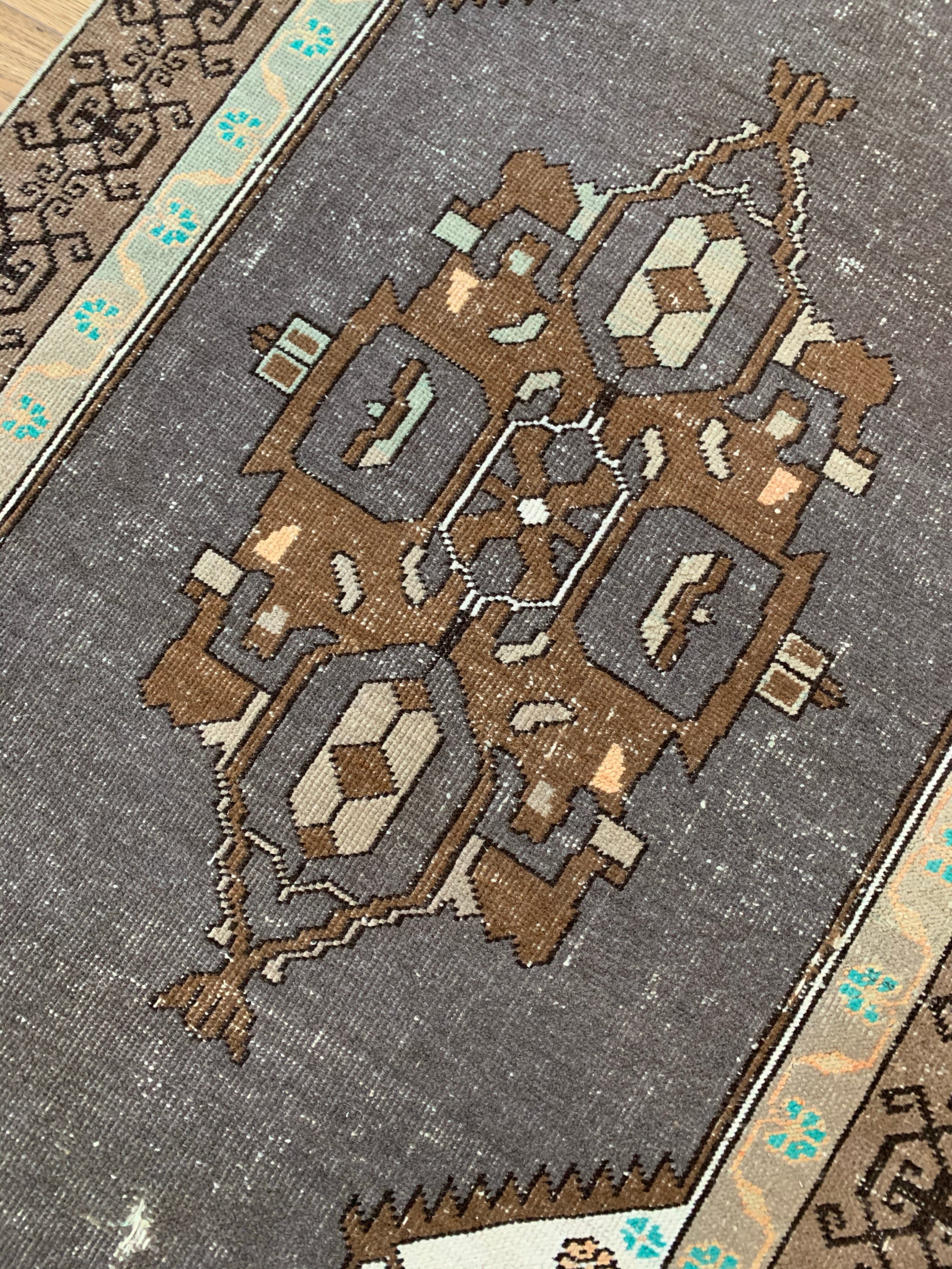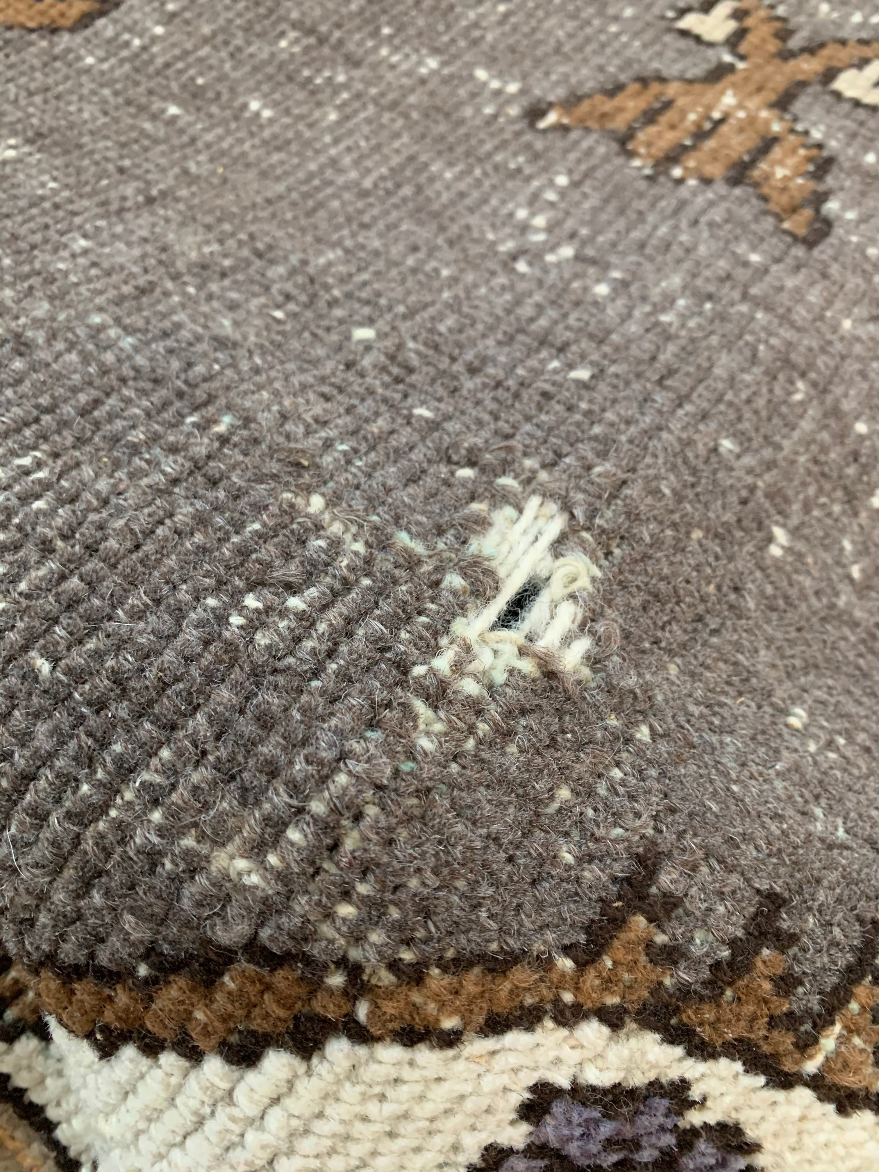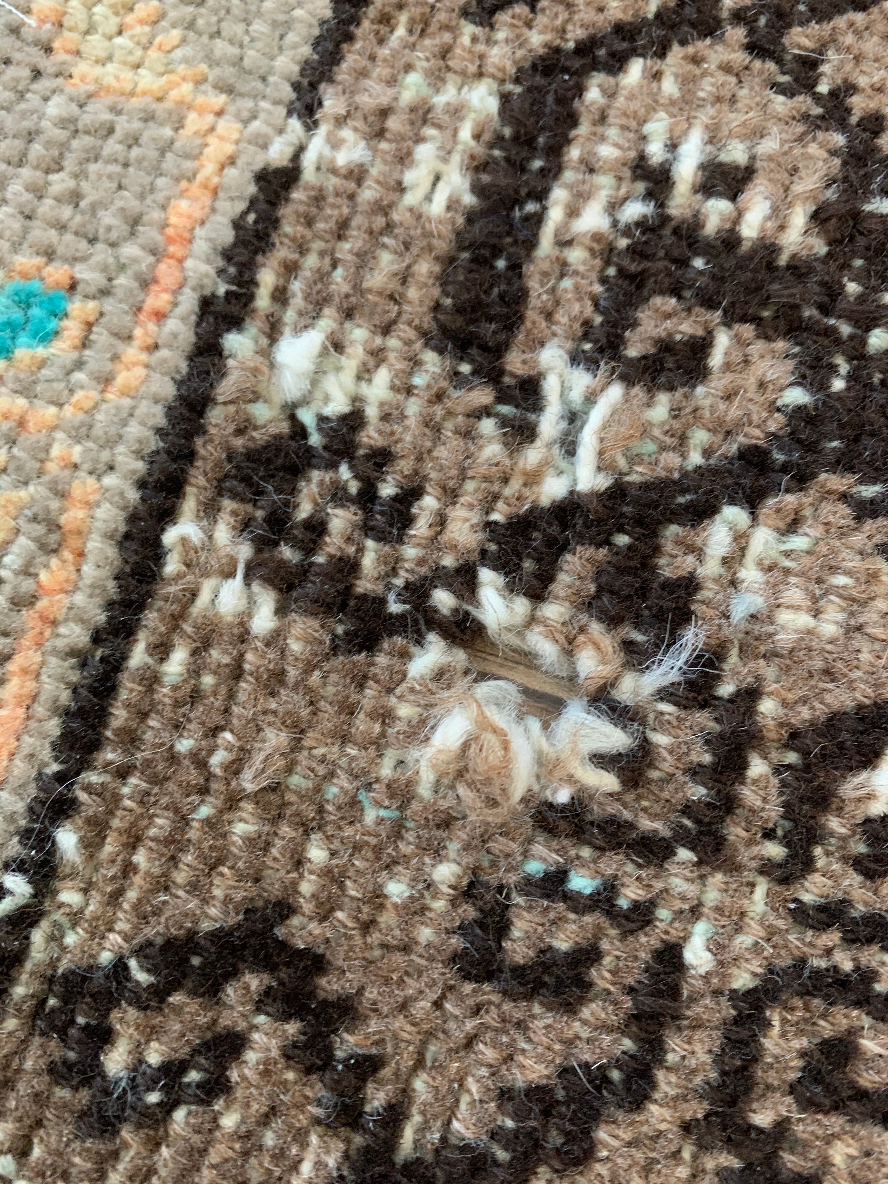 Cleaning: Vacuum on occasion, with suction only. Spot clean with clear soap, a little bit of white vinegar, and water. Never use a carpet cleaner machine to clean a vintage rug. If your piece is fragile or antique, or needs a deep clean, take it to a professional.
