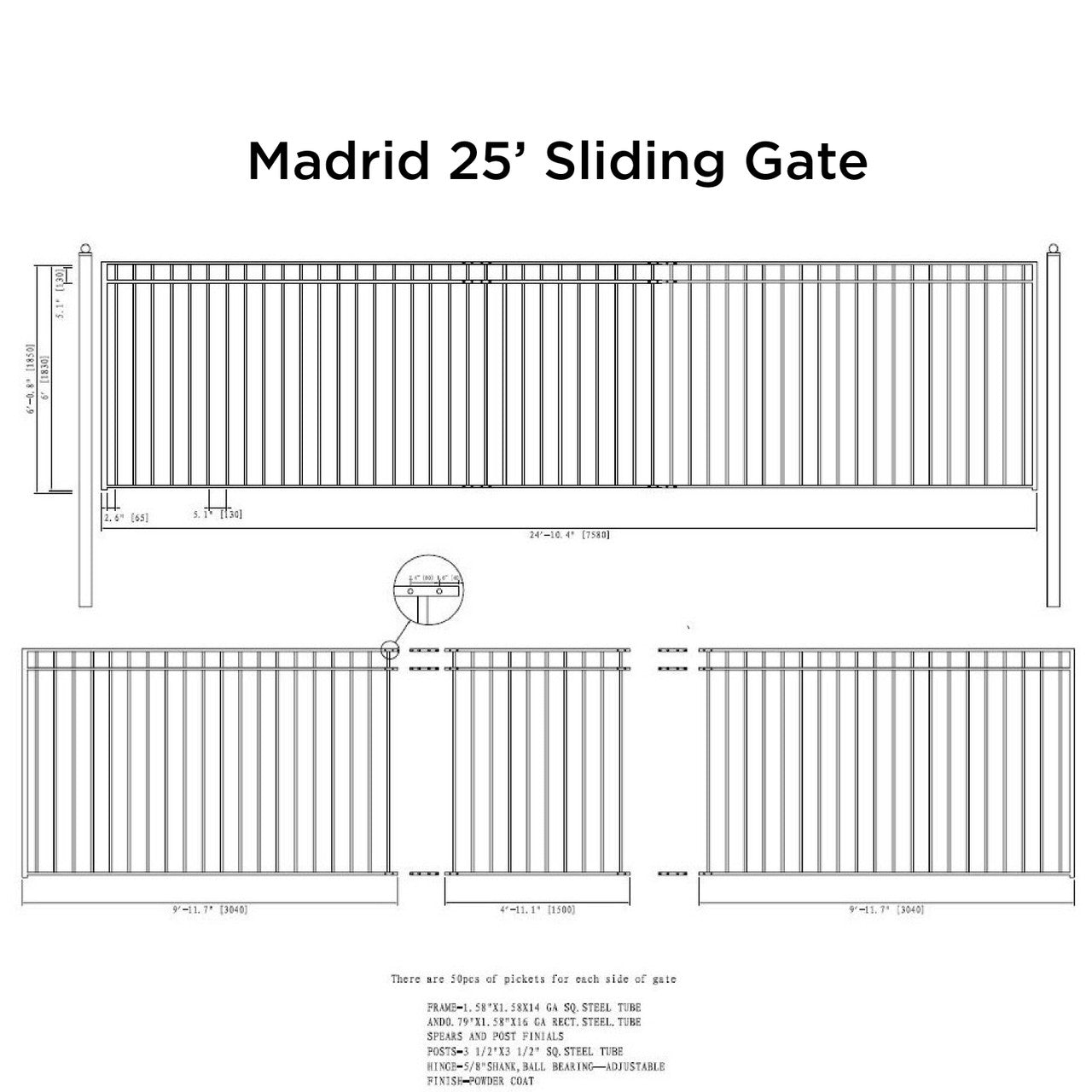 25x6 ft Steel Sliding Driveway Gate - MADRID Style
