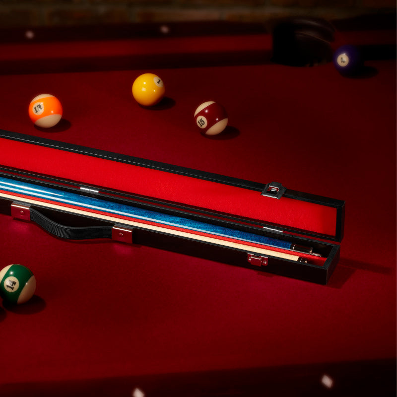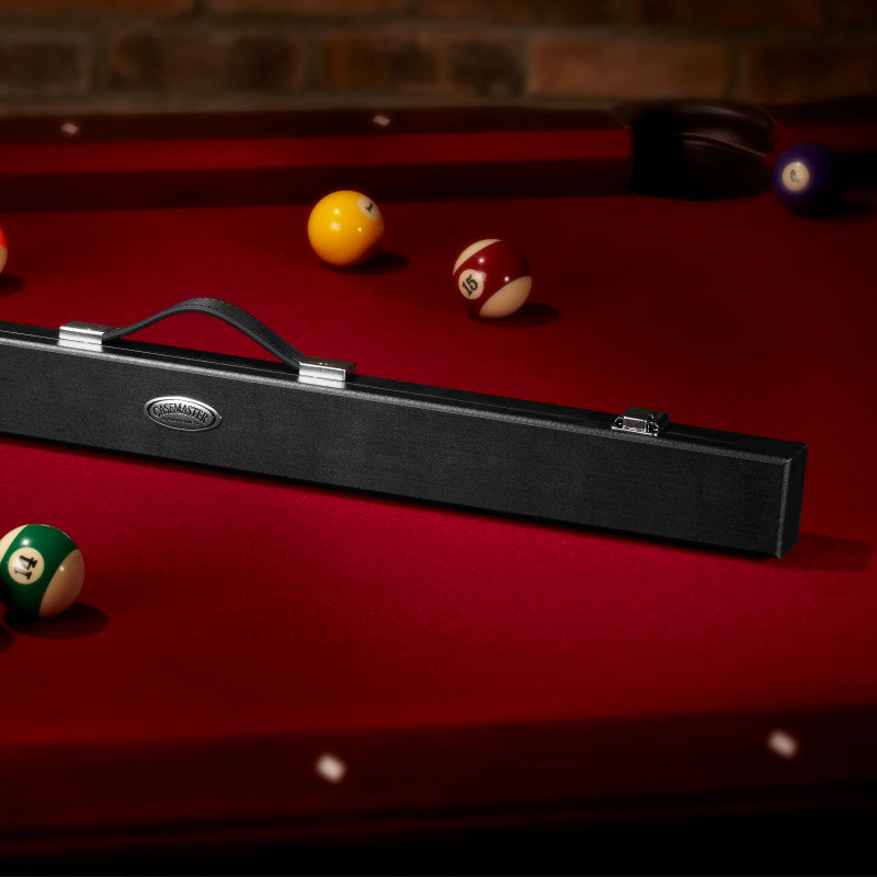 The ultimate solution in cue transportation is Casemaster Deluxe Hard Cue Case, with its classic leatherette exterior engineered to repel the elements and keep your cues in the perfect dry conditions and safeguarding them from warping. Inside, the hard resin shell is covered in a soft cloth lining, bolstering your cues against heavy impacts and preventing cracking and breaking. The Deluxe is your total solution for a night out at the pool hall or your buddy’s man cave with its classic hinge design. The Deluxe features a handy carrying handle for convenient, easy transport. The Deluxe Hard Case is able to store one butt and one shaft.