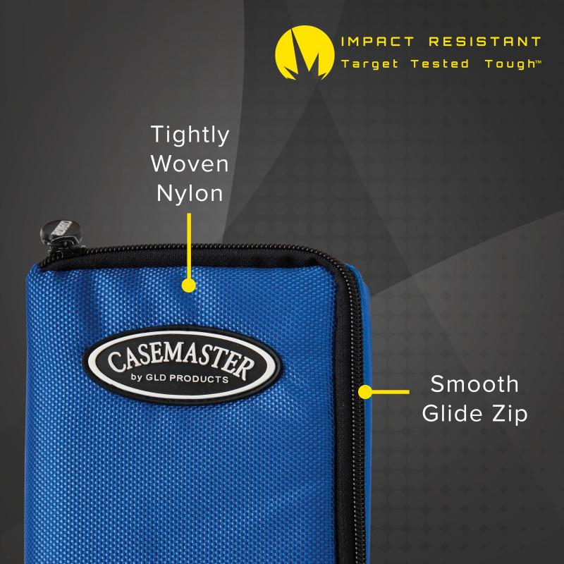 The most portable version of the Casemaster dart storage system is here with the Casemaster Select Three Dart Nylon Dart Case! Constructed from tenacious nylon fibers woven around a hard resin shell, the Select combines both enduring strength of materials with easy-to-carry portability for a complete package. The Select packs enough storage to suit the most serious darters. The prized possession of any darter is their darts, and the Select can store three of them, a complete set! Each dart is locked into place with a solid foam insert to prevent the darts from moving, which could cause breakage. With plenty of space at either end of the case, you won’t have to fold down your flights, leading to longer lifespans and a truer flight path. Both steel tip darts and soft tip darts will fit nicely into this stylish case. In addition to dart storage, the Select can hold an plenty of extra dart supplies to keep you on target and your darts in top form. With six pockets for extra flights and shafts, you’ll never be without replacements. The piece that truly sets the Casemaster Select apart is the plastic accessory storage tube, with a separate lid, to sort out your spare tips and any other smaller accessories you need to bring out to darting events. Finally, this great looking durable case is backed by GLD Products’ 90 day guarantee, should something go wrong. Choose from one of three colors to best complement your style: black, blue or pink.