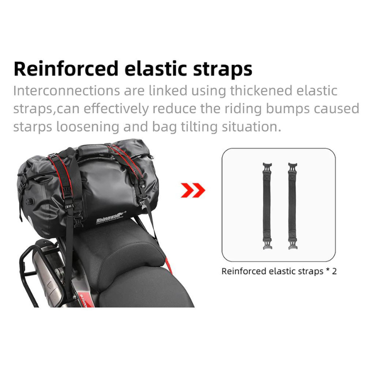 The 45L duffel bag is an essential item to carry on your motorcycle when out on long trips. With a wide-mouth roll-top system makes it water and dust proof. It also includes an internal large zip pocket sleeve. This duffel includes elastic tie-down straps, for easily attaching to motorcycles.