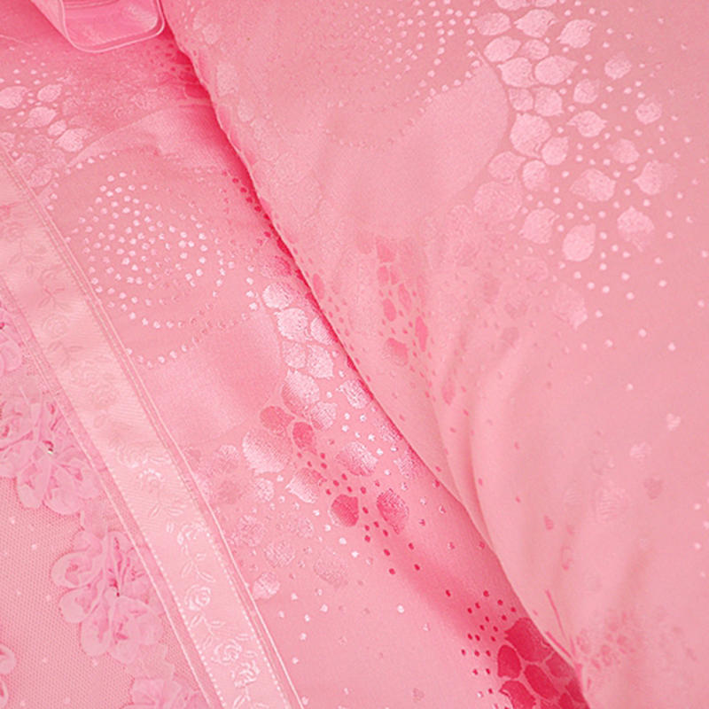 Construct your fantasy bedroom within minutes with our Aaliyah Cotton And Lace Duvet Cover And Bed Skirt Set. The whimsical bed set is made to make a statement, with its adorned triple-layered ruffle design. The breathable cotton and delicate lace combination are thoughtfully distributed into segments to find the harmony between practicality and style.