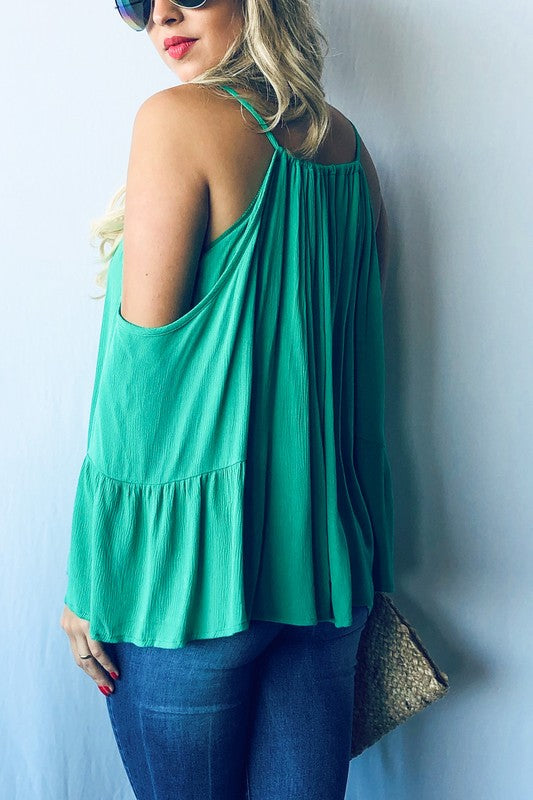 Adjustable Strap Cold Shoulder Top - Kelly Green