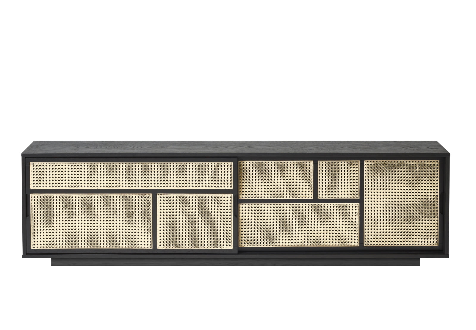 Designer Mathieu Gustafsson plays with airy transparency and three-dimensionality with woven rattan for a semi-transparent look that is both contemporary and retro. The Sideboard can be outfitted with lighting inside to amplify the sensation. The access holes also allow for easy wiring of electric appliances and various media devices. Measures 1.8m (W) x 38cm (D) x 50cm (H).
