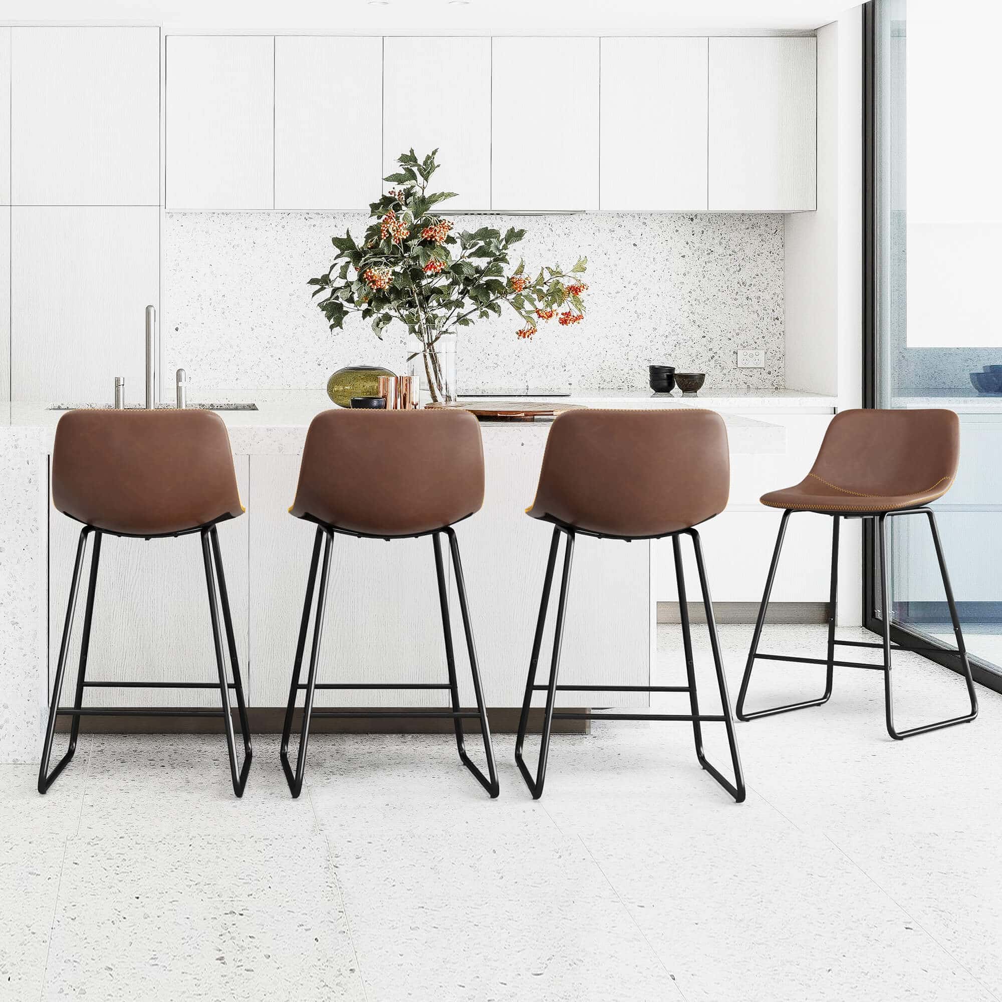 - 【Modern & Sleek Style】This modern bar stool will add a fresh new look to your home while seamlessly integrating with your existing interior design. Surface decored and reinforced with orange zig-zag stitching that blends with the chair color, brings exquisite detail that will impress your guests and suits for various indoor and outdoor occasions.