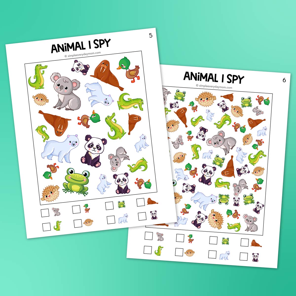 - 3 unique hard animal themed I spy printables (numbers 6-10)