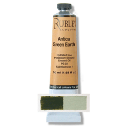Low tinting strength. If you are looking for a higher chroma Terre Verte with the same transparency and earthiness this would be a very good choice. The pigment for this paint is sourced from near Verona in Italy, making it very similar to the green earths used in Italian Renaissance painting.