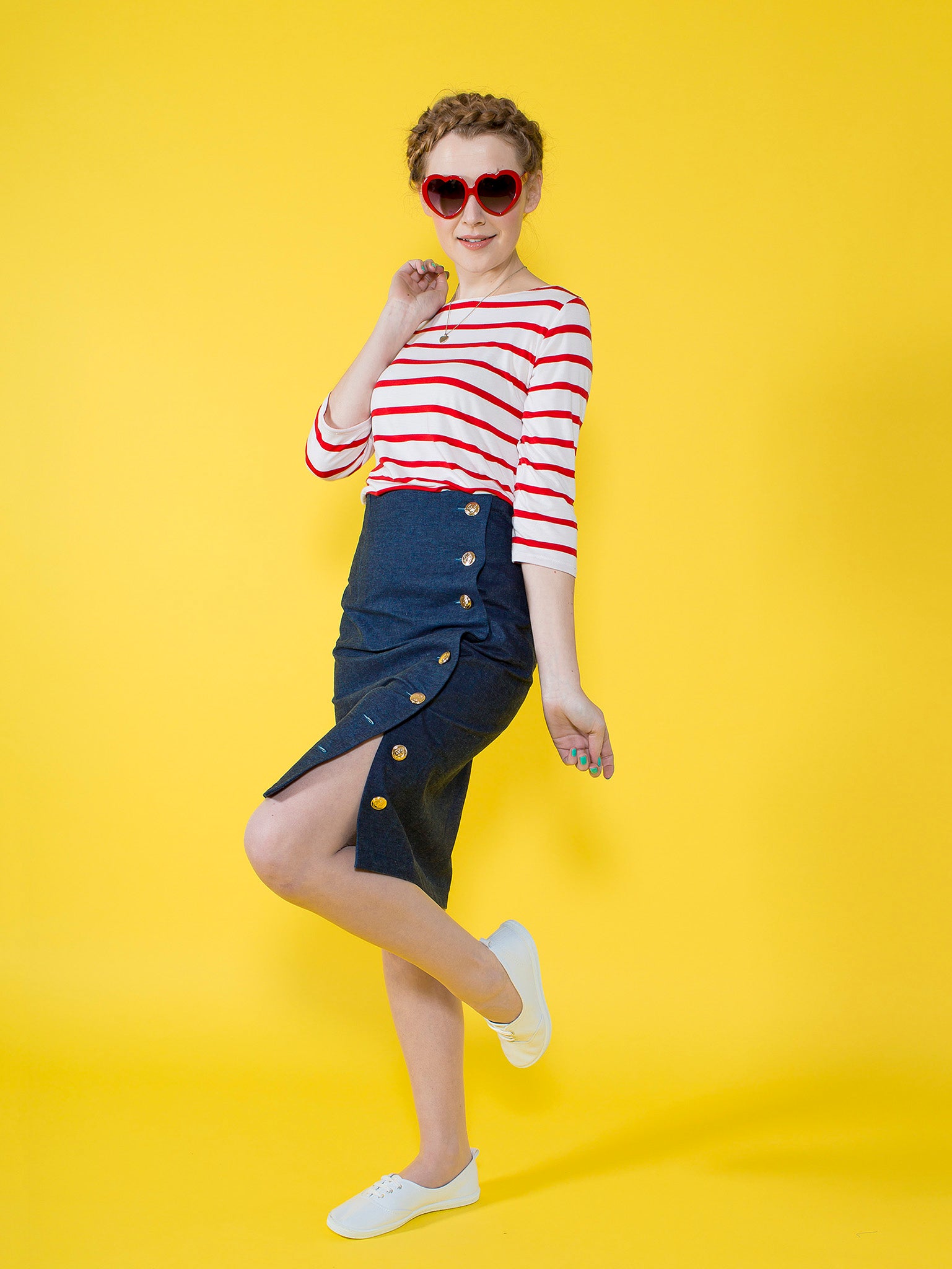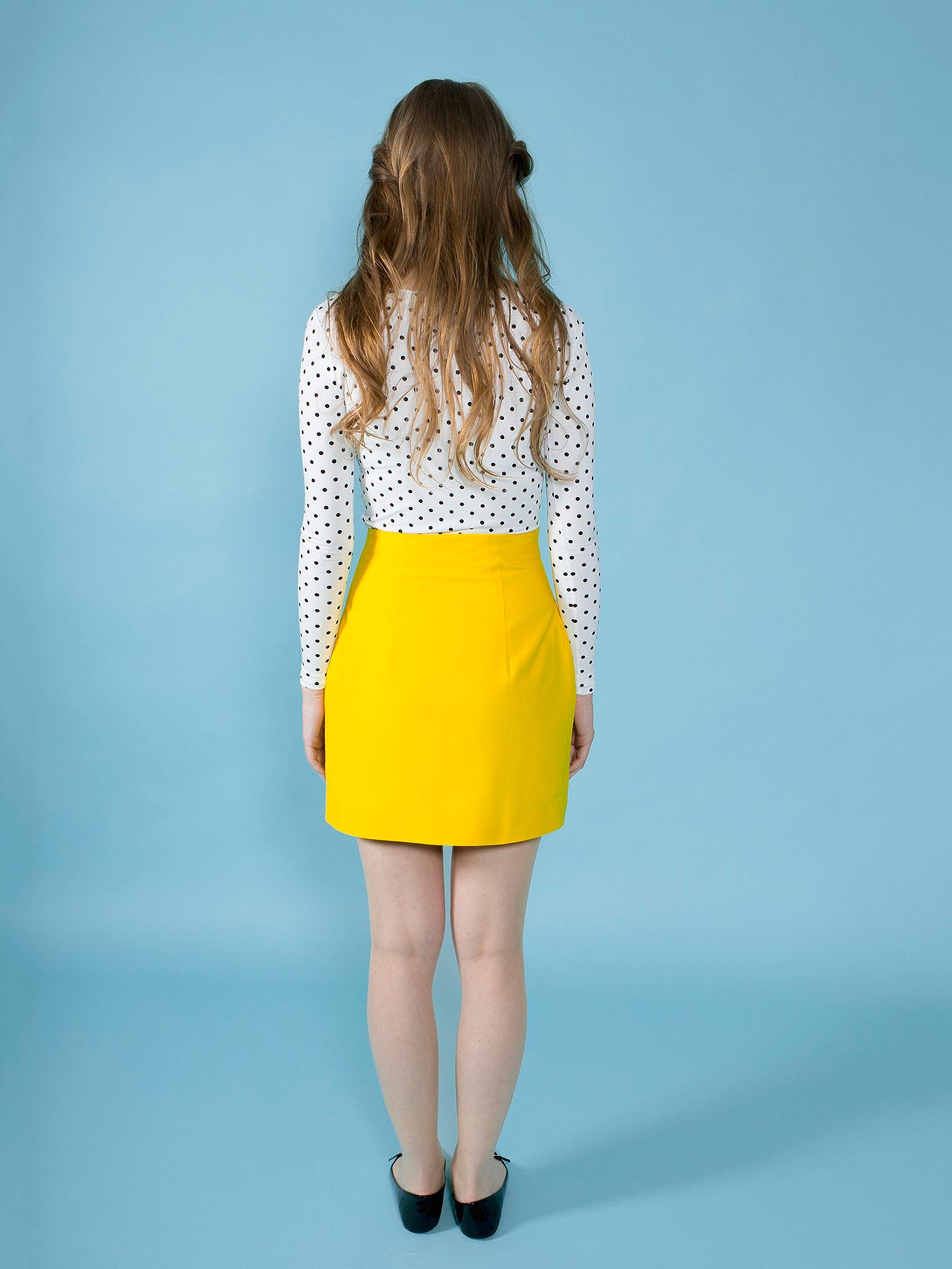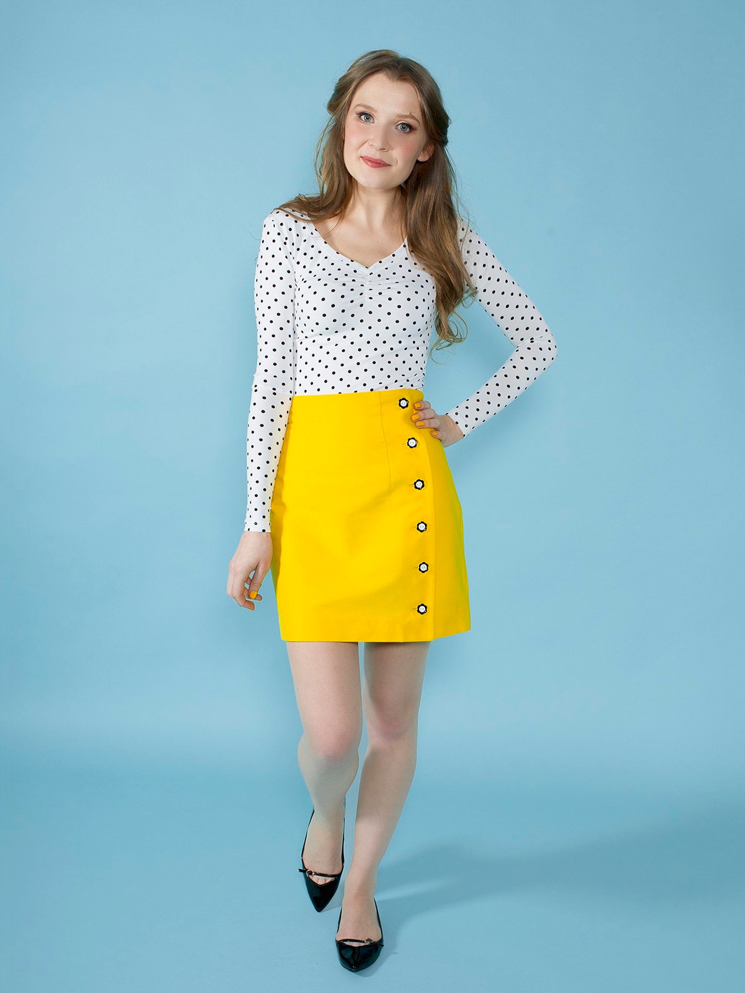 Arielle is an asymmetric pencil or mini skirt with an adorable button opening to one side. Long darts and a high waistline create a figure-hugging shape. The unlined version is an ideal project for confident beginners, or take your sewing prowess up a notch by adding the optional luxury lining.