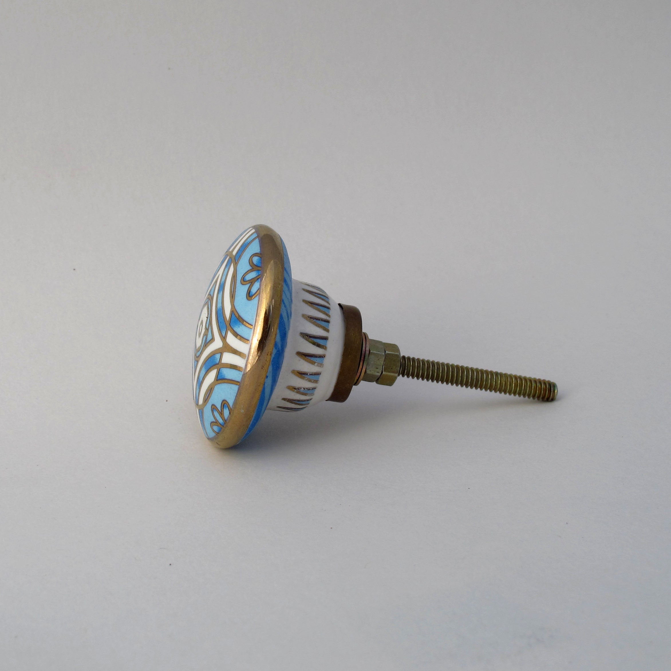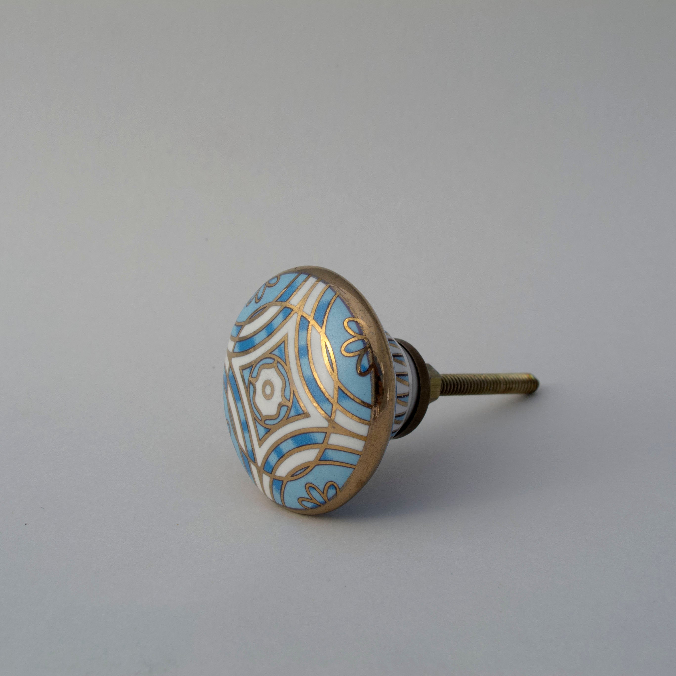 Art Deco Drawer Pull. A beautiful geometric art deco inspired design with shades of gold, black and a neutral brown. This unique knob is a lovely accent to any kitchen cabinet, bedroom dresser, or bathroom armoire. Gold accented rim and finishings.