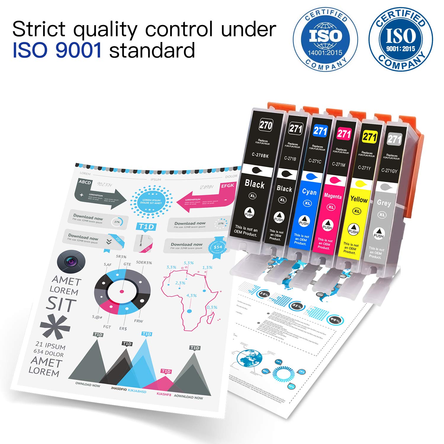 Arthur Imaging Compatible Ink Cartridge Replacement for Canon PGI-270XL CLI-271XL (1 Large Black, 1 Small Black, 1 Cyan, 1 Yellow, 1 Magenta, 1 Gray, 6-Pack)