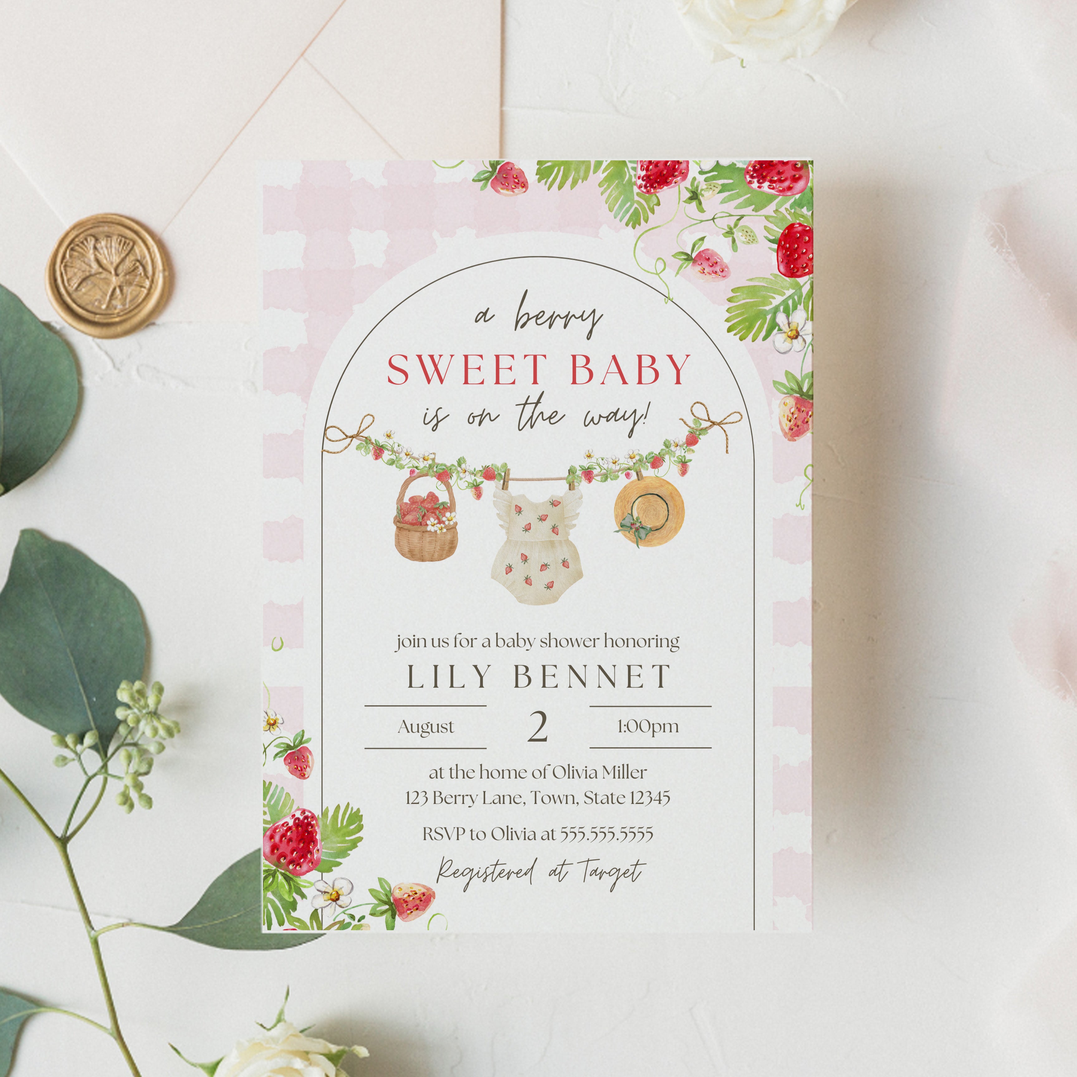 Berry Sweet Baby Shower Invitations | Strawberry Baby Shower
