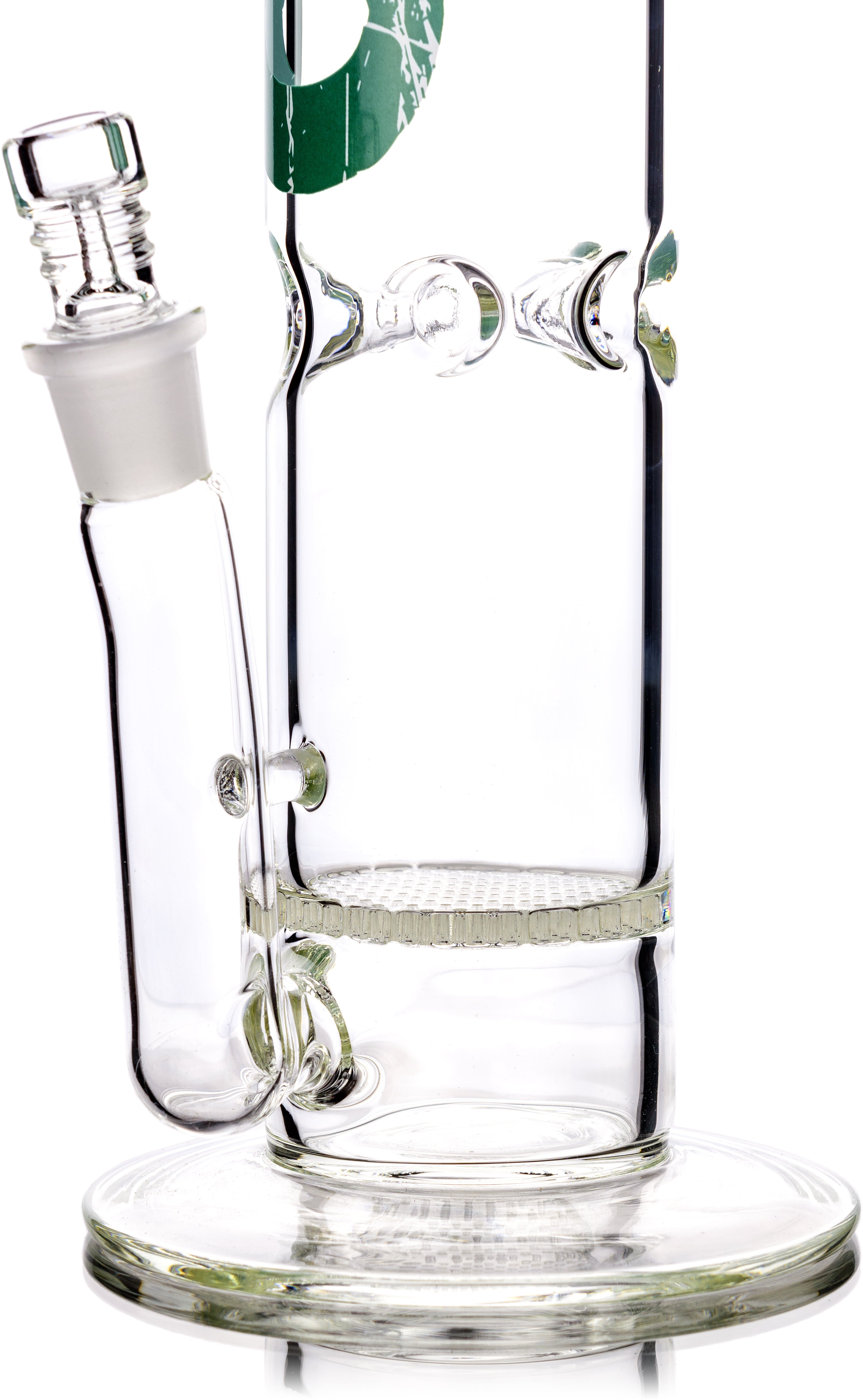 This Bio water pipe is 12" tall and is fused with a honeycomb disc percolator. The honeycomb disc cools down the smoke giving you a cleaner, smoother hit. The stemless style eliminates the need for a downstem making this the new innovative standard for straight shot percolated water pipes. Made in Southern California, Bio water pipes are engineered for those who want the quality and durability of a high-end piece at an affordable price. Bio water pipes are made from high-grade borosilicate glass and comes with a glass on glass bowl.