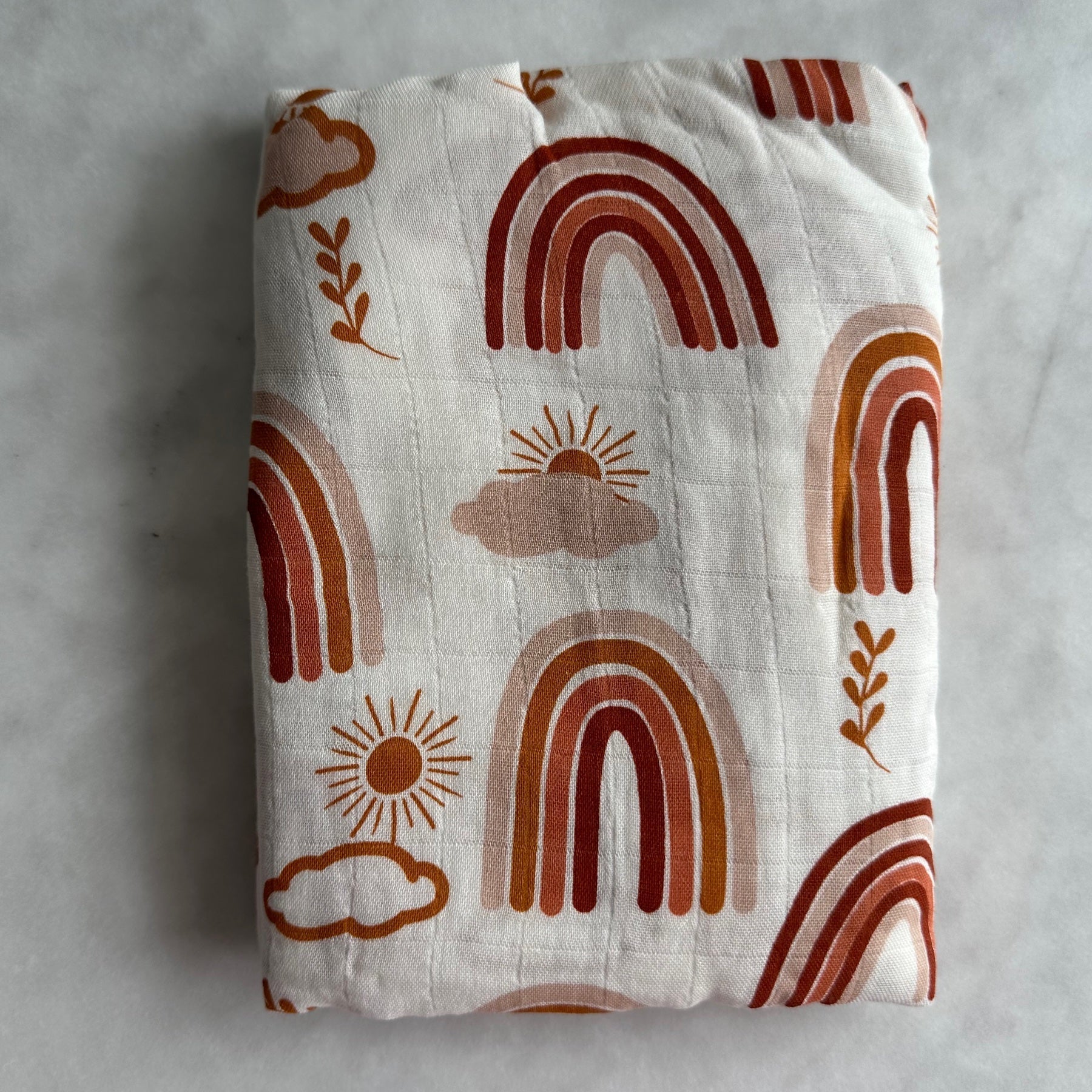 The Bronzing Rainbow Swaddle is not only stylish but also practical and easy to use. Whether you're swaddling your baby for naptime or using it as a comfortable blanket for playtime, this swaddle will quickly become an essential item in your baby's collection.