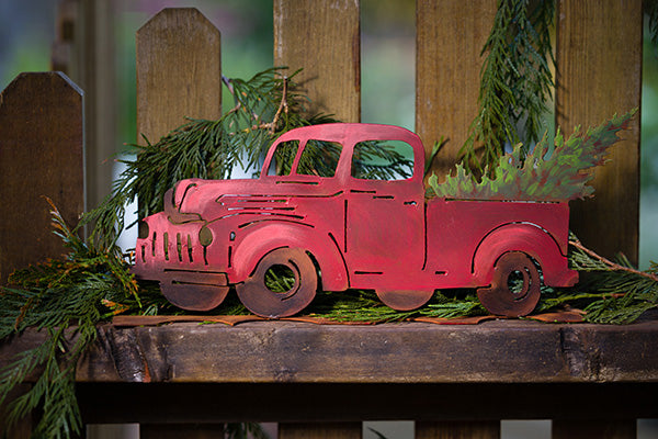 Add an iconic old-fashioned holiday design with our Classic Truck Pop-Up metal artwork! This design features a classic antique truck including beautifully intricate metal cutouts and details to add a realistic look to the body, grill, and wheels. Of course, we’ve added a beautiful Christmas tree to the back of the truck - a signature image during Christmas time!