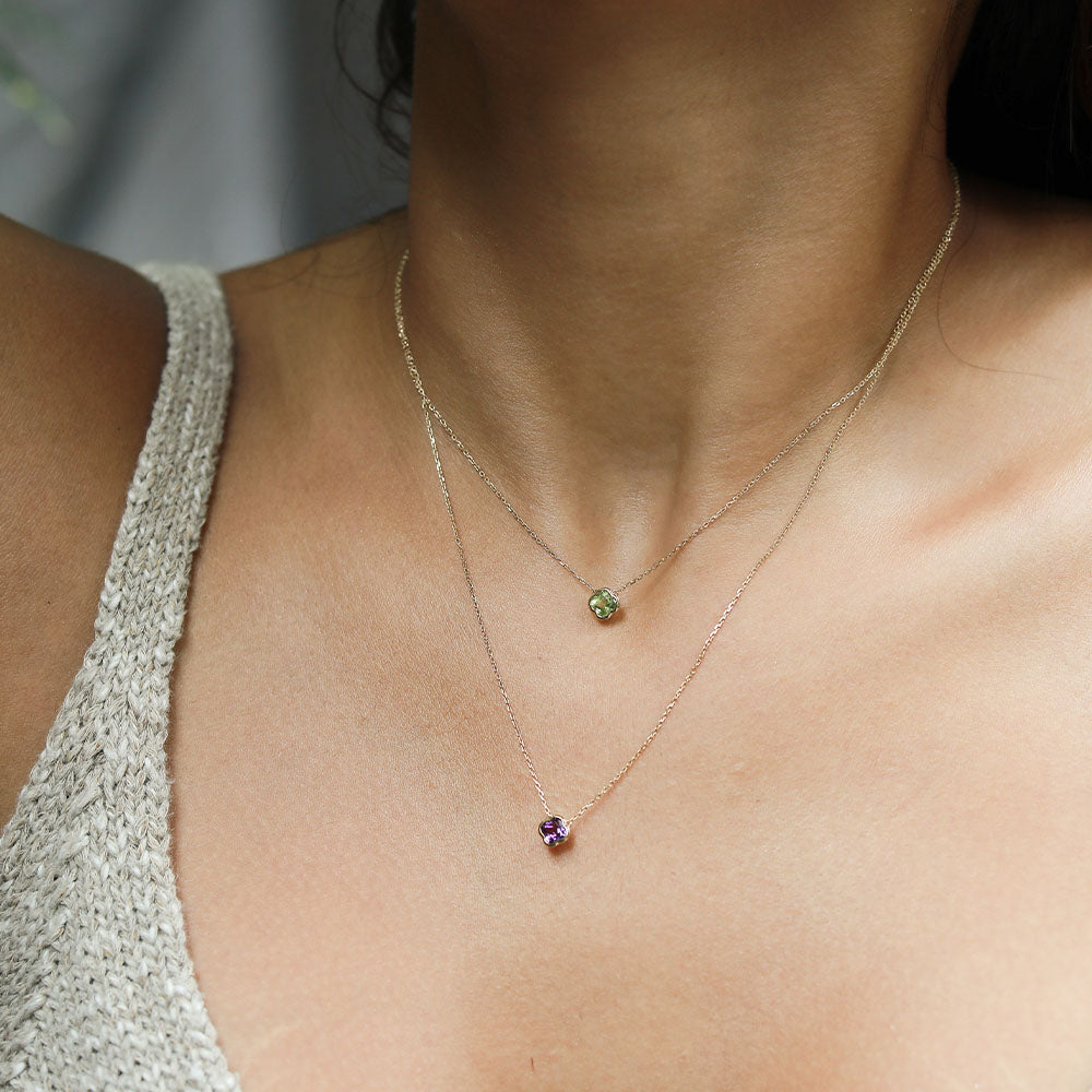 Clover Cut Peridot Necklace / 9K and 18K Solid Gold