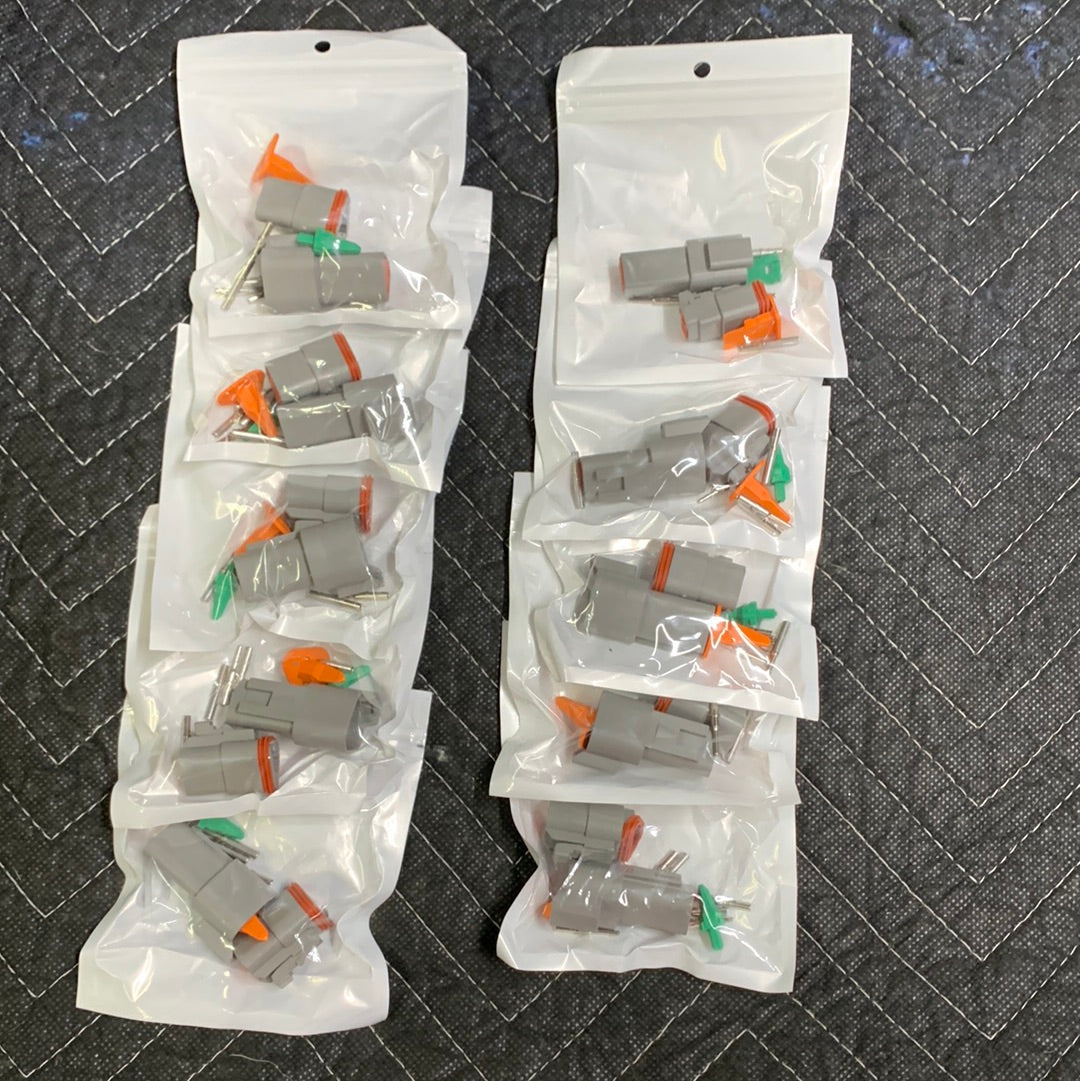 Deutsch DT series connectors individually packed complete with both male and female connectors with pins.