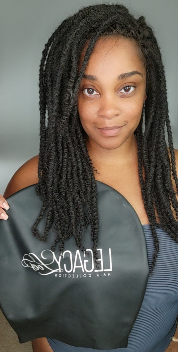 Legacy XL Swimming Cap is ideal for long locs, braids, long hair, extensions, thick hair, short hair, & more. Our XL swim is very comfortable, and can be easily stretched. This quality swim cap can also be used as a shower cap if needed.