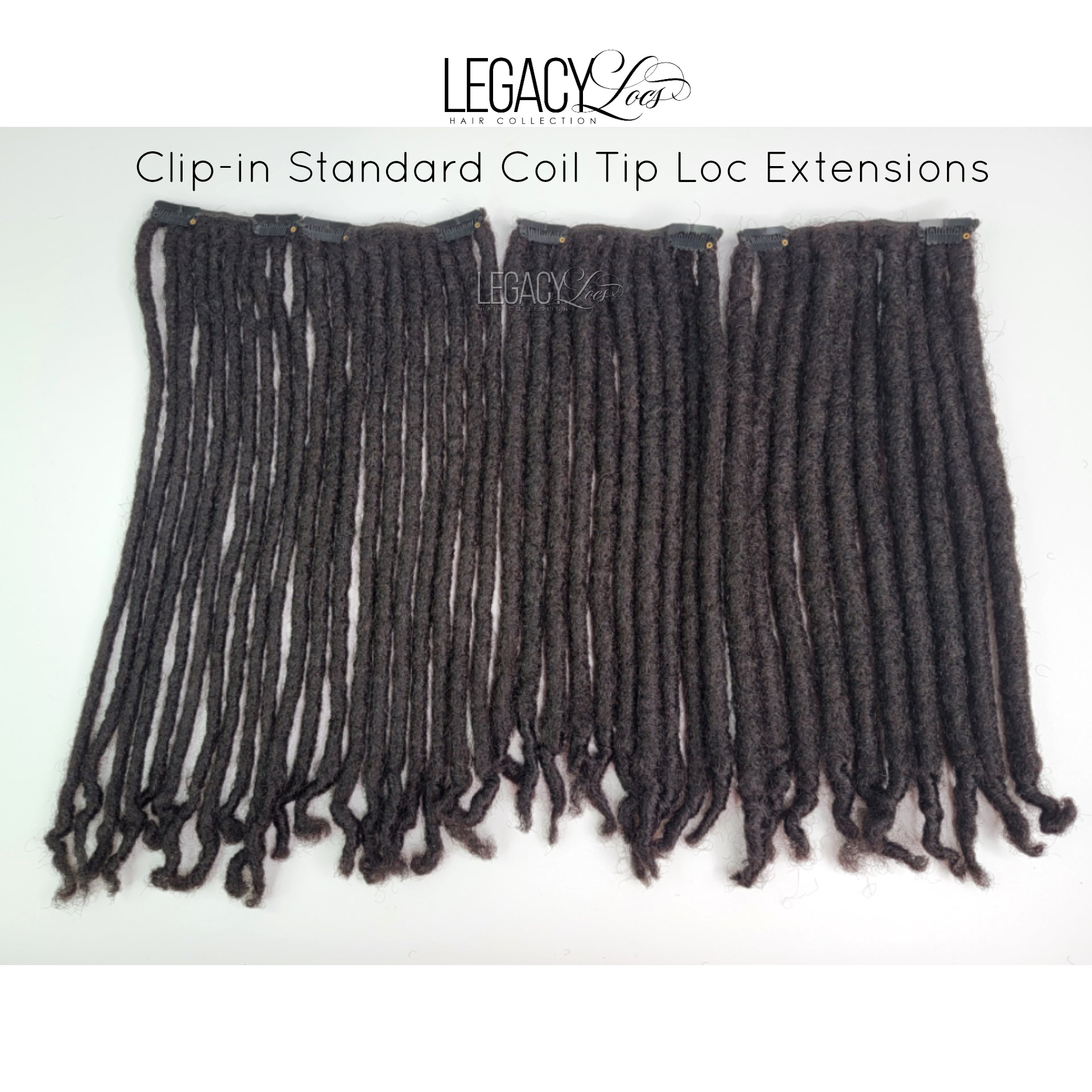 Legacy Clip-in Loc Extensions are handmade using 100% afro kinky human hair. Each clip in has 10 locs crochet onto a weft. Legacy Clip-in Loc Extensions are soft, lightweight, and blends perfectly if you're trying to achieve extra volume to your current locs.