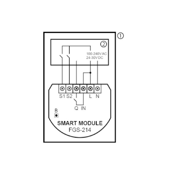 This FIBARO Double Smart Module (FGS-224) requires 3-wire (including neutral) installation and works with an AC (230V) power supply.