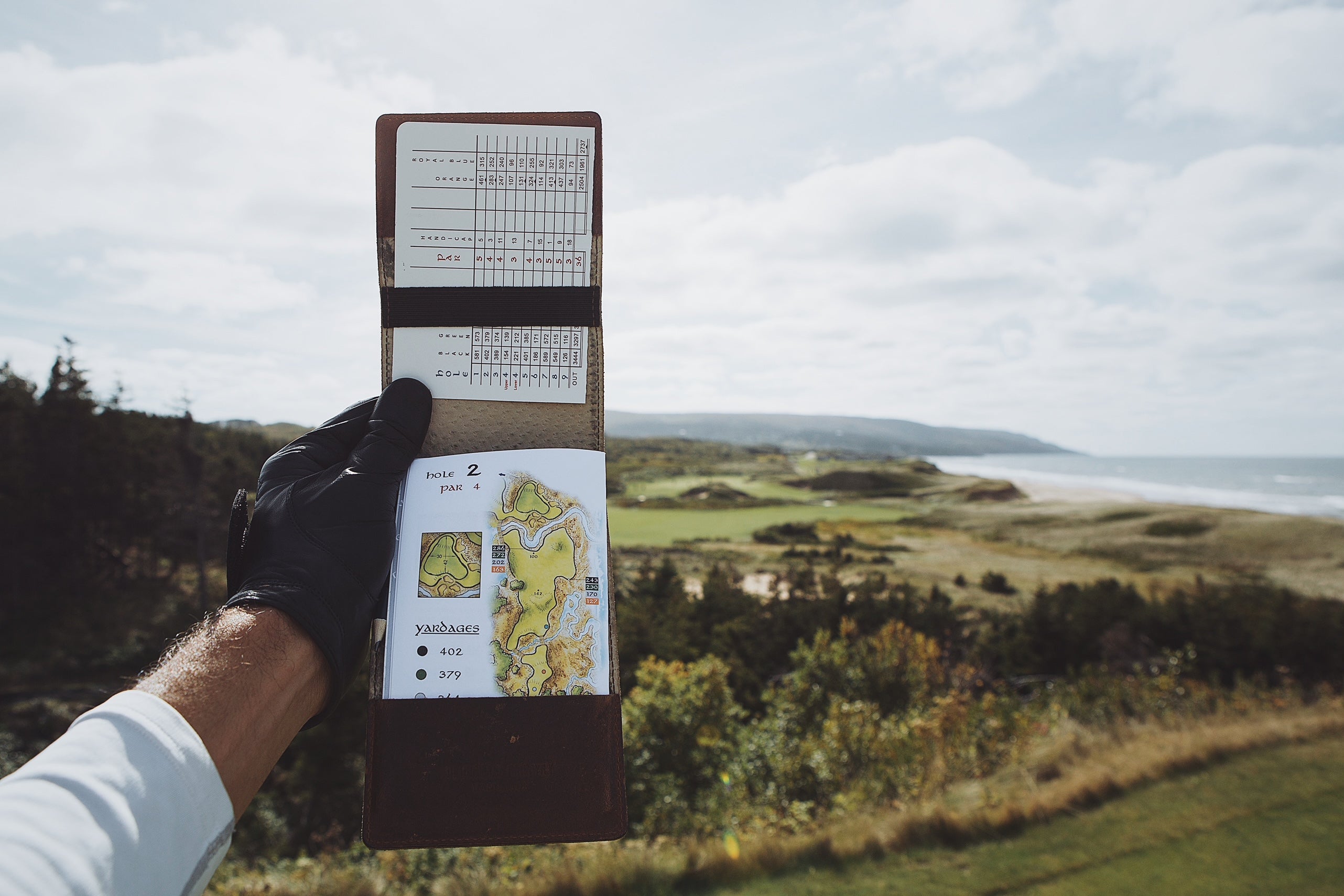 Leather Golf Scorecard Holder/ Yardage Book Cover in Navy Pueblo