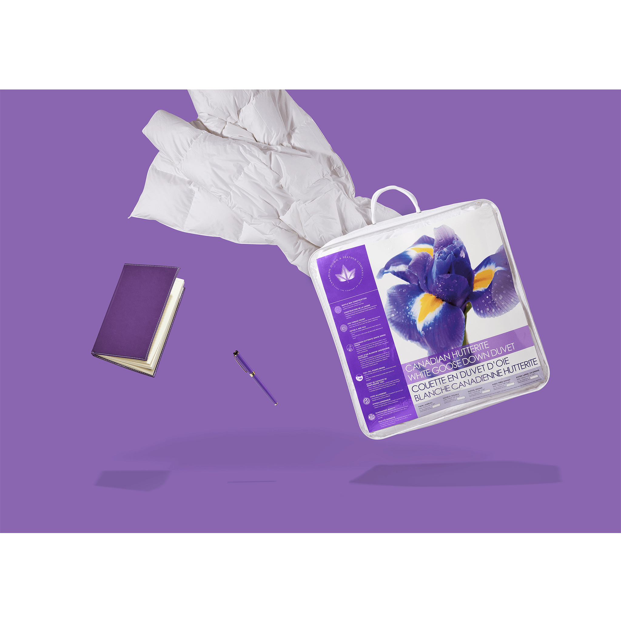 This goose down duvet is made with care in Canada with Canadian fill. The shell is 400 thread count cotton – soft and quiet. The duvet is filled with 725 loft goose down farmed by Hutterites in Alberta, Canada. Down fill is soft and luxurious, made up of tiny, fluffy clusters. The fill is high loft, which means it is high quality and very warm per ounce. This is why you’ll find this duvet is very lightweight. Just a little bit of fill goes a long way in terms of warmth!