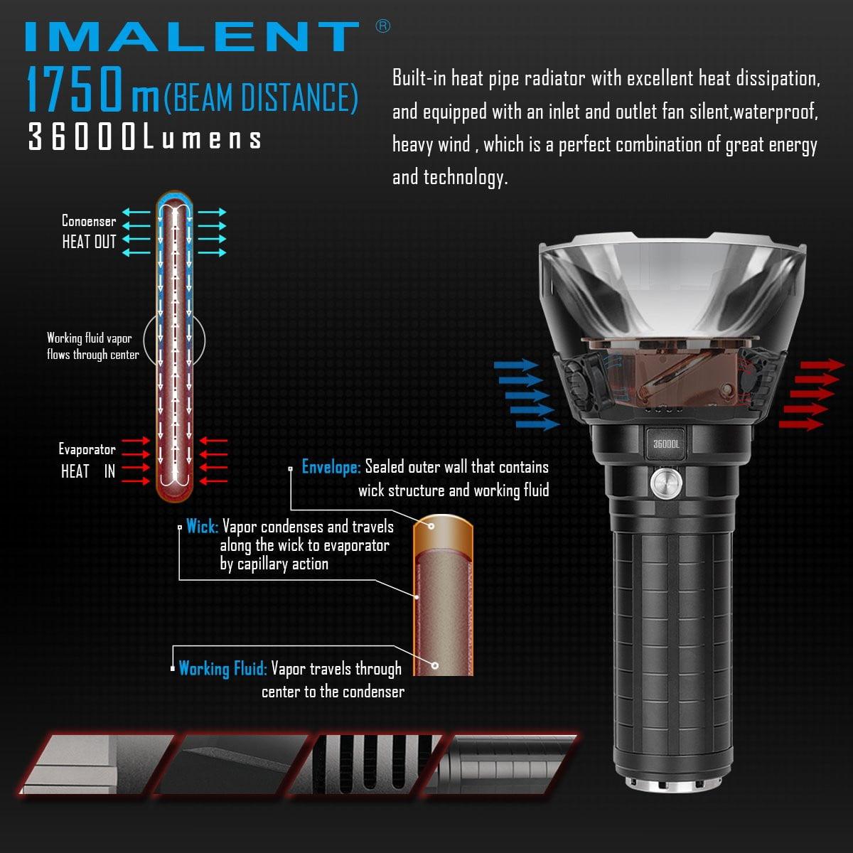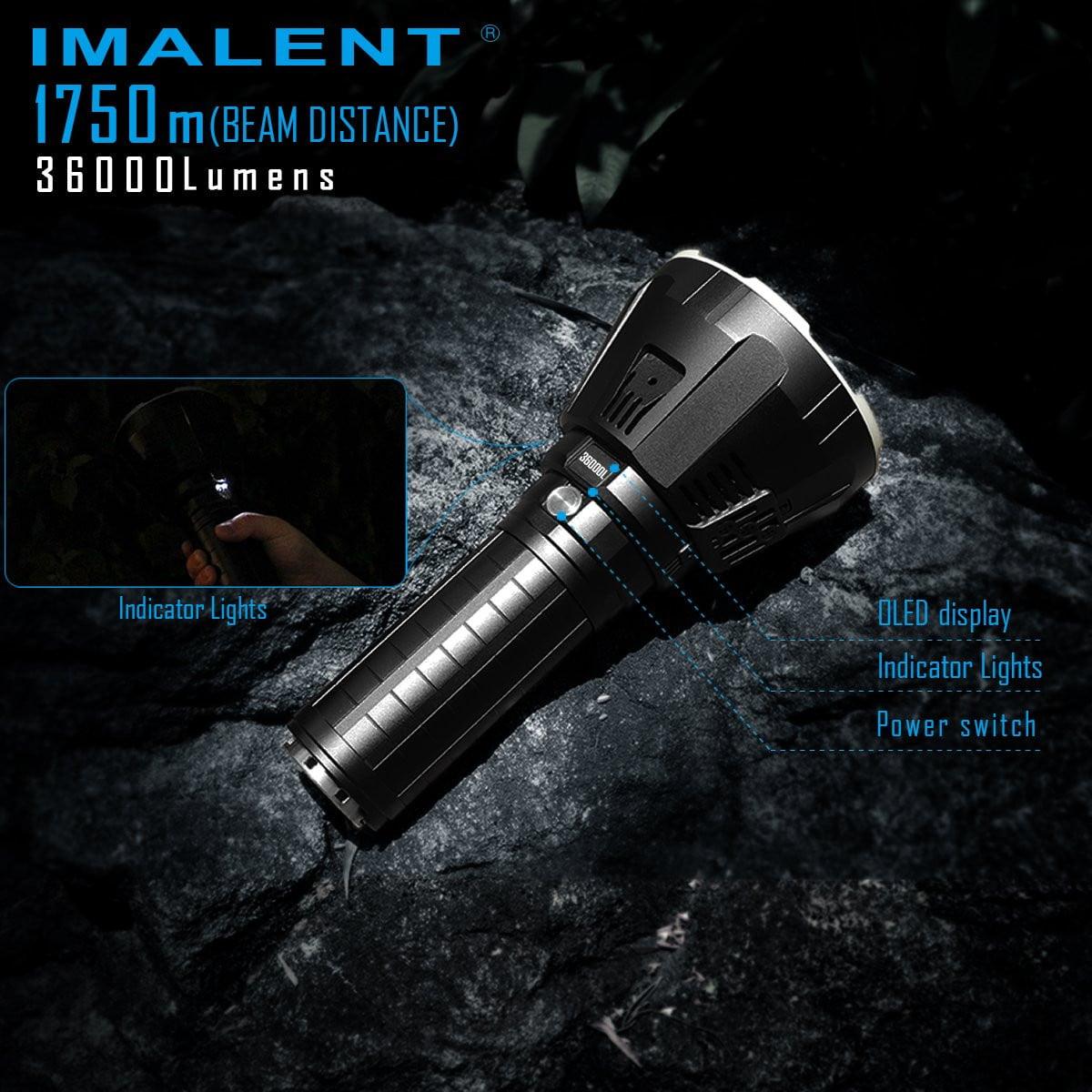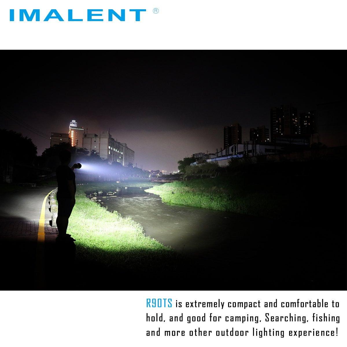 R90TS,”Night of the sword” utilizes18 pieces the American CREE XHP35 HI LEDs and maximum output of up to 36000LM and long range of up to 1750m. The Built-in safety self testing intelligent charging circuit,convenient, fast and safe. It uses IMALENT’s signature high-end side pressure switch. This ergonomic design provides unprecedented grip . In any case, eight output levels ensure long output times, low output or high output. The “Hidden Strobe” feature allows you to get up and running quickly at critical times to keep you safe.