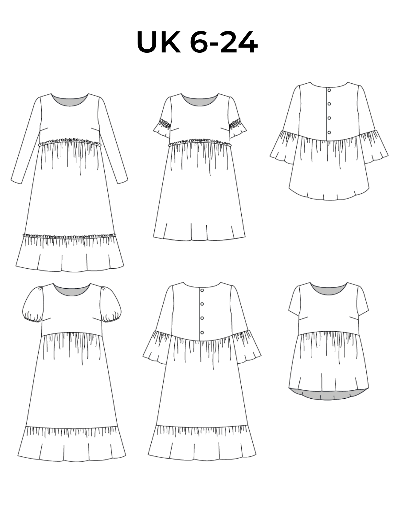 As with the original Indigo pattern, you have the option to stitch either regular gathered seams or exposed frill seams. Mix and match the pattern pieces and seam styles to create 60 different variations!