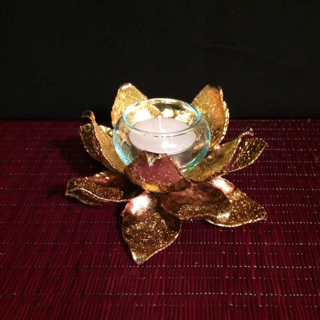 Gold Lotus Flower Candle Holder | Tea Light Metal Art | 5 Inch