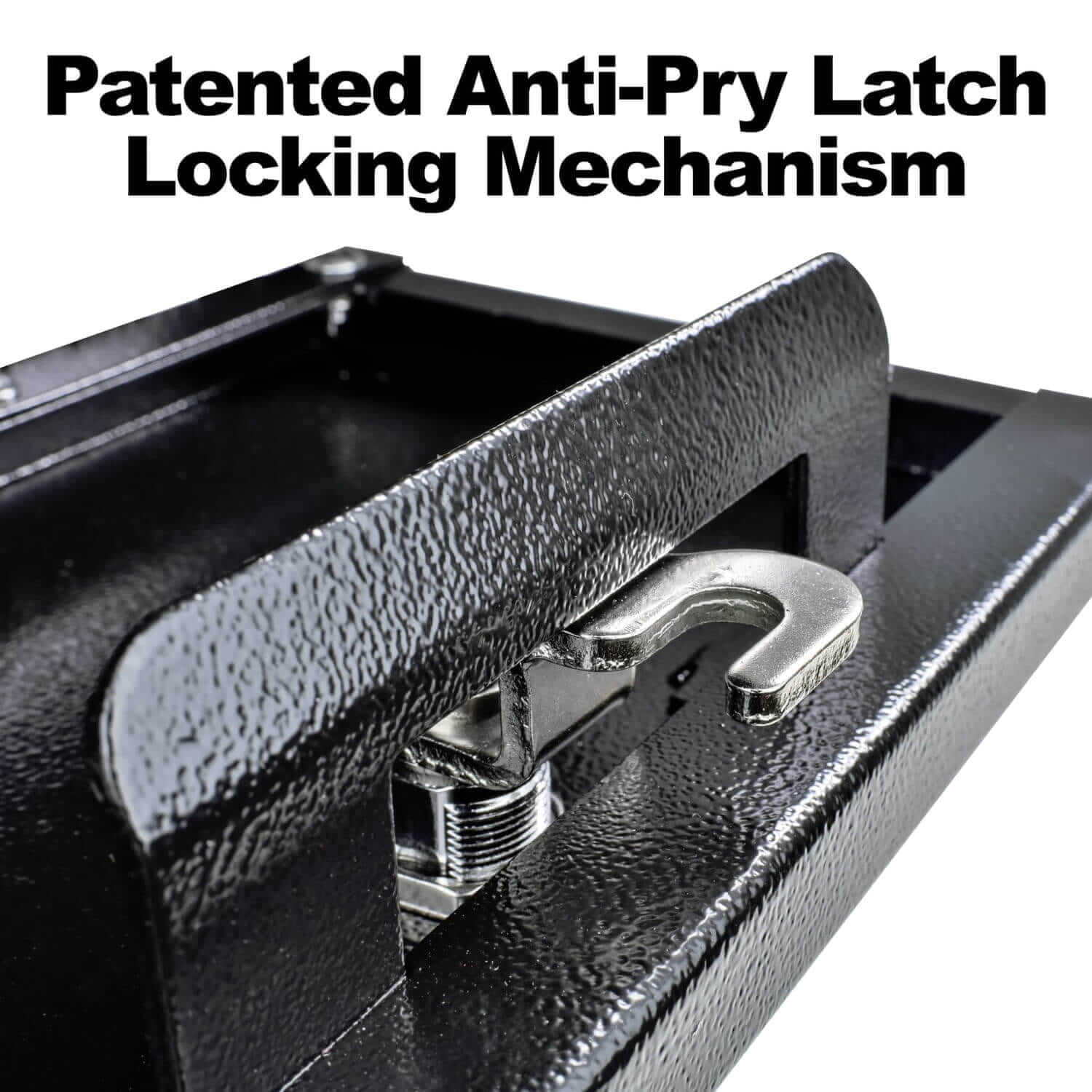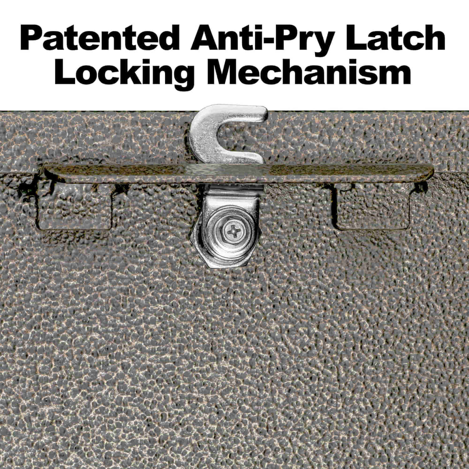 - Patented anti-pry latch locking mechanism to prevent leveraged entry