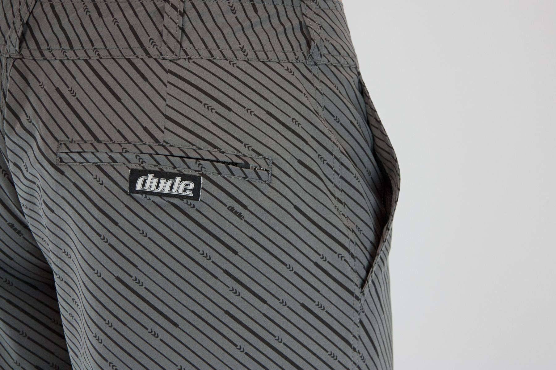 Good looking enough for on or off the course, Dude's Pro Shorts are all about comfort. With a 21” leg, the breathable 4-way stretch fabric ensures every stretch and reach is done in style. Features zip fly and stud closure. Durable and virtually indestructible, the Pro shorts will withstand pro level play and any washing machine. Choose from black, grey, or make a DUDE lifestyle statement in the new boomerang and dude infused grey pinstripe. "I've played a few rounds in them, and you guys make a very quality product that is meant for Disc Golfers, thanks for your work to grow the sport." July 2016, Justice Martinez[mibreak]