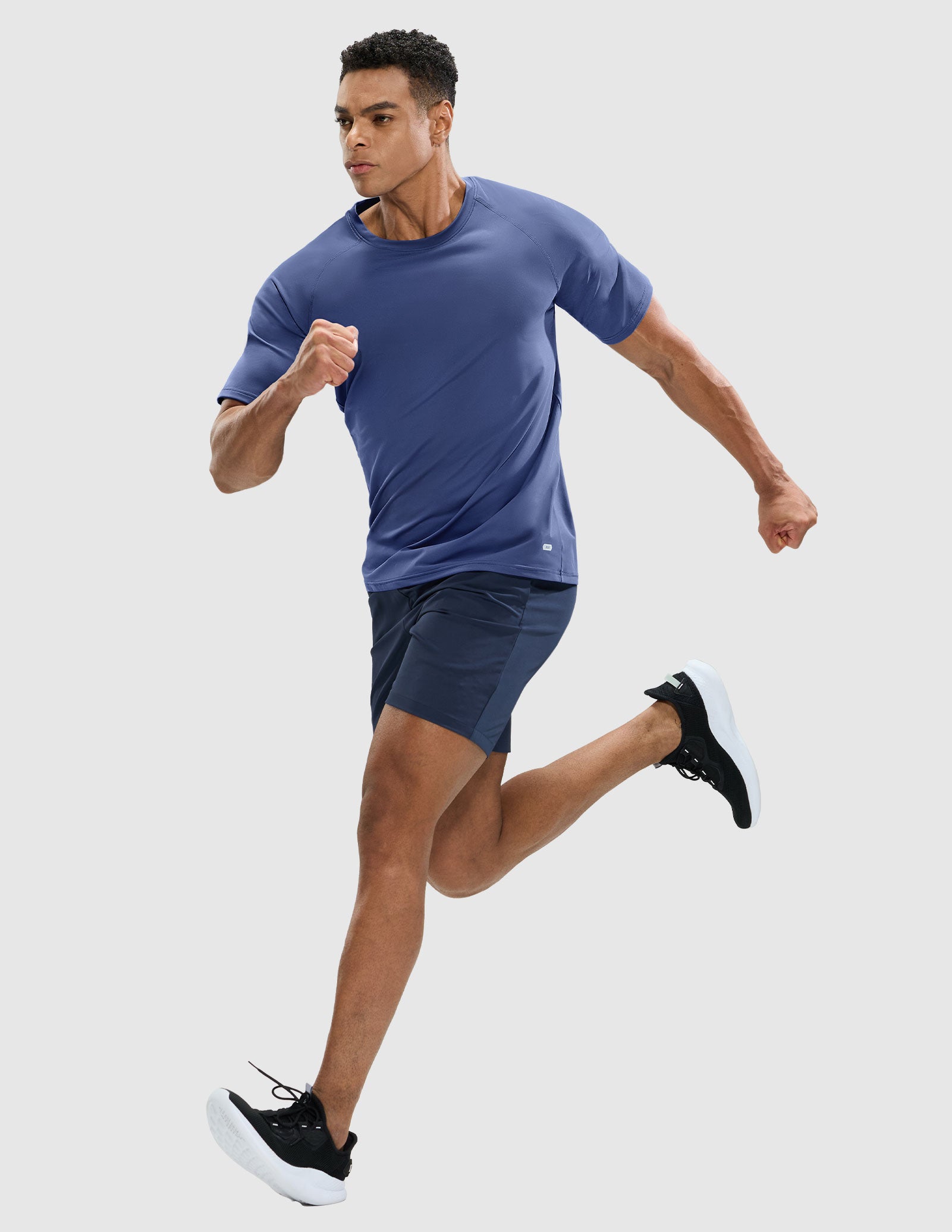 MIER men's workout t-shirts are crafted from a soft and stretchy blend of 92% polyester and 8% spandex, offering both comfort and flexibility for your active lifestyle. The lightweight and breathable fabric with dry-fit technology ensures quick sweat-wicking to keep you cool during workouts. These raglan short sleeve tees feature ergonomic 4 needle flat-lock seams for a smooth, chafe-free fit, allowing full range of motion. Durable and easy to care for, these crewneck workout shirts are perfect for sports, exercise, running, and casual wear.
