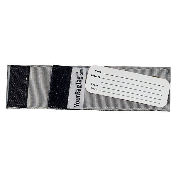 - Luggage tag is approximately 4" long by 1.5" tall w/fabric loop handle or metal cable loop