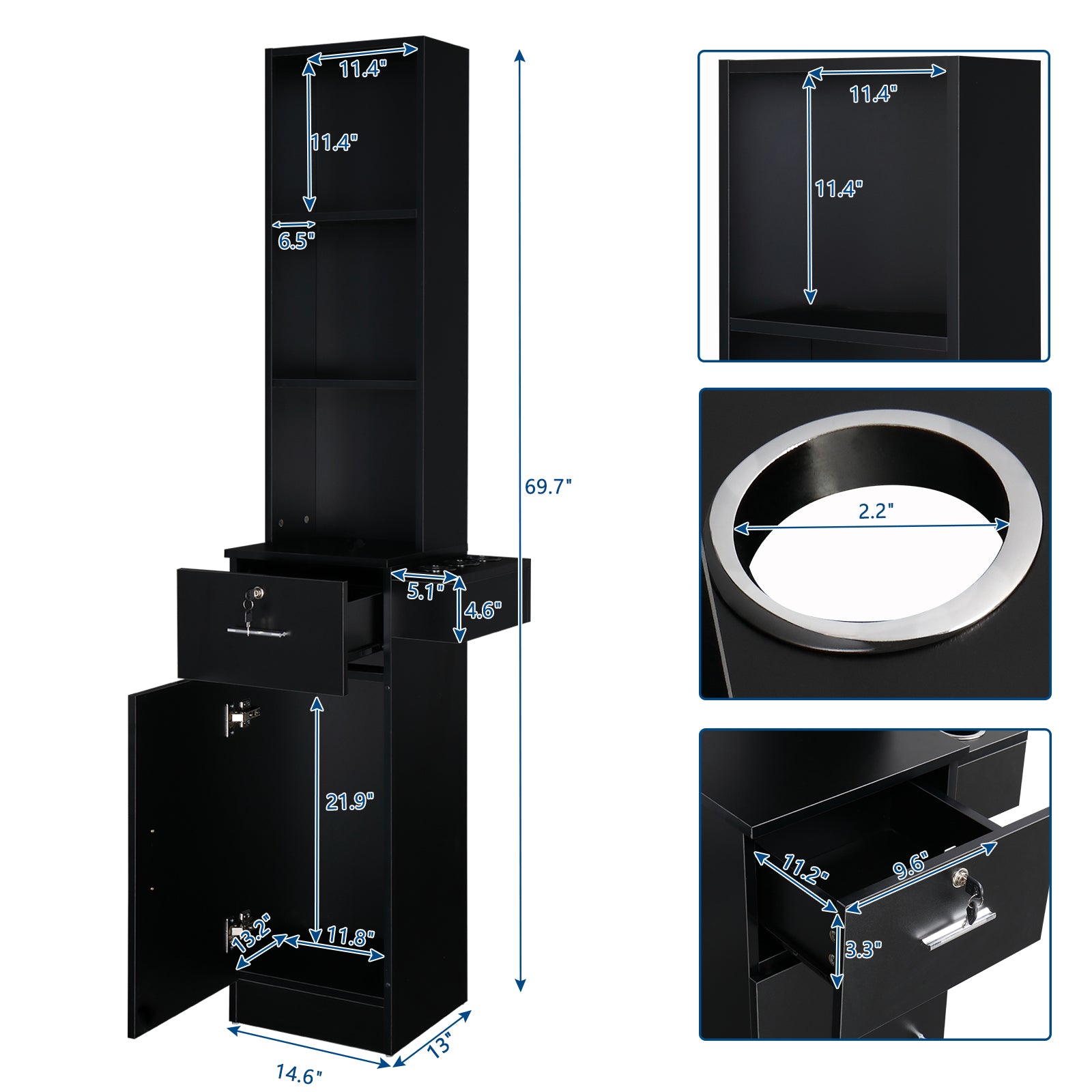 3.【Appropriate Size】- The size of this cabinet is 14.6"(L) x 13"(W) x 69.7"(H), making it compact and space-efficient. Its simple yet practical design makes it an ideal choice for barbershops.