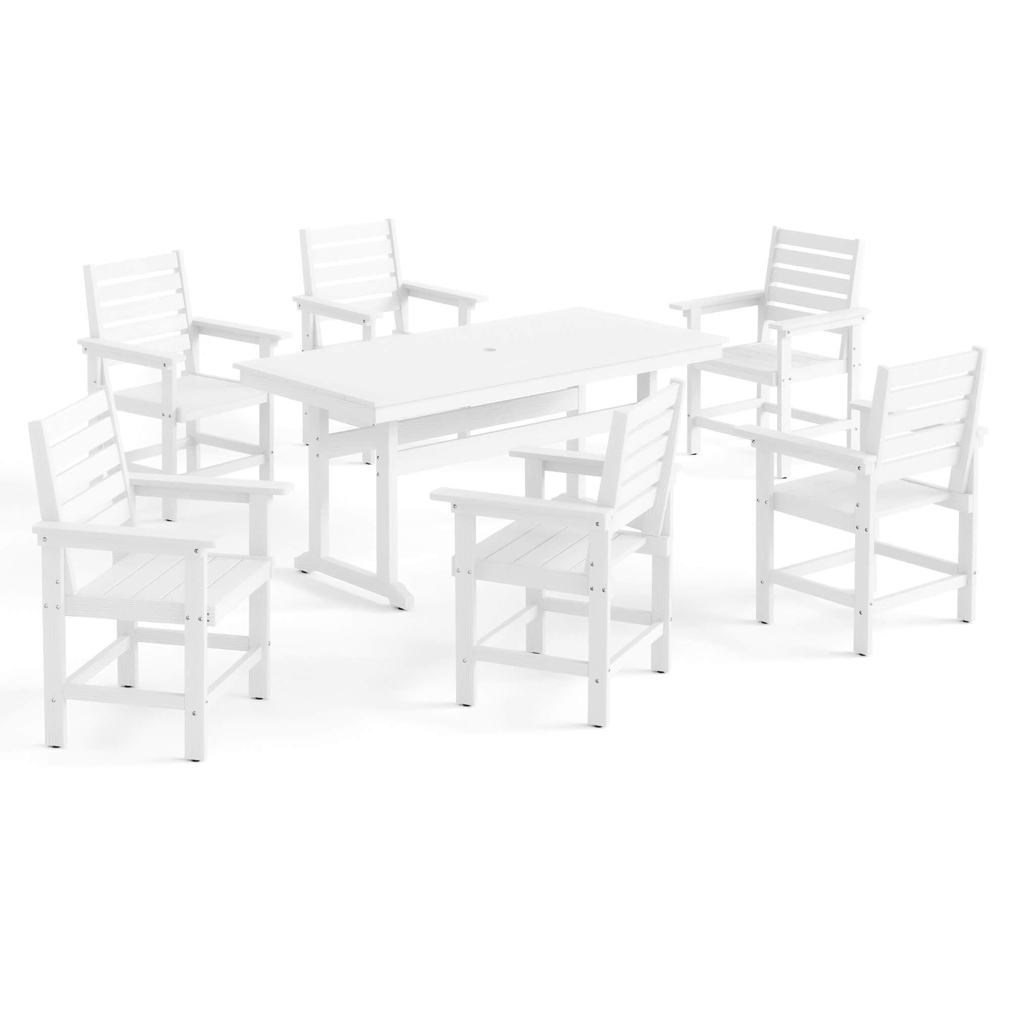 All-Weather Applicable: The outdoor dining sets are made of HDPS material and 304 stainless steel screws. They are waterproof, sunproof, and windproof, ensuring durability without fading or peeling.