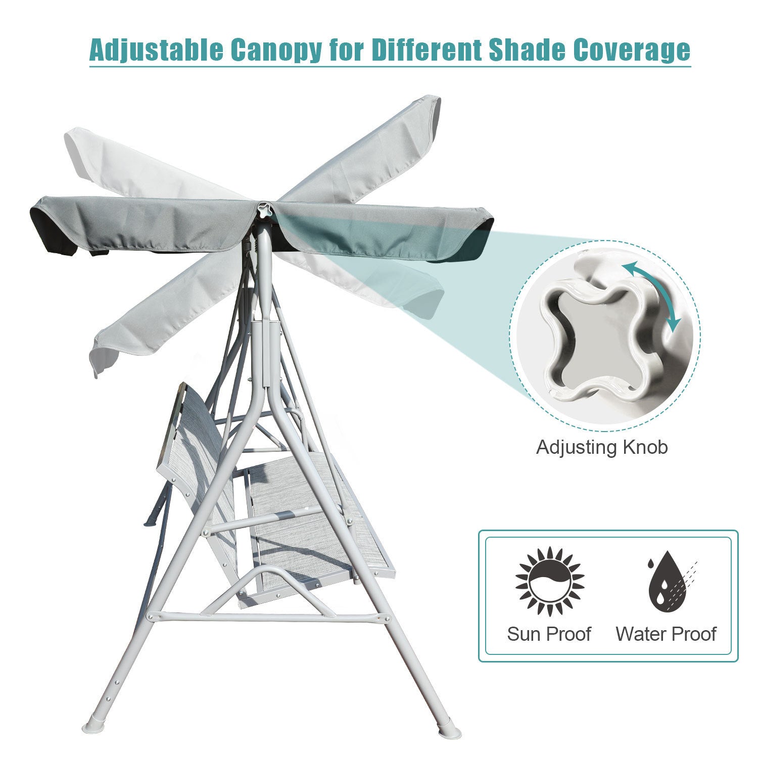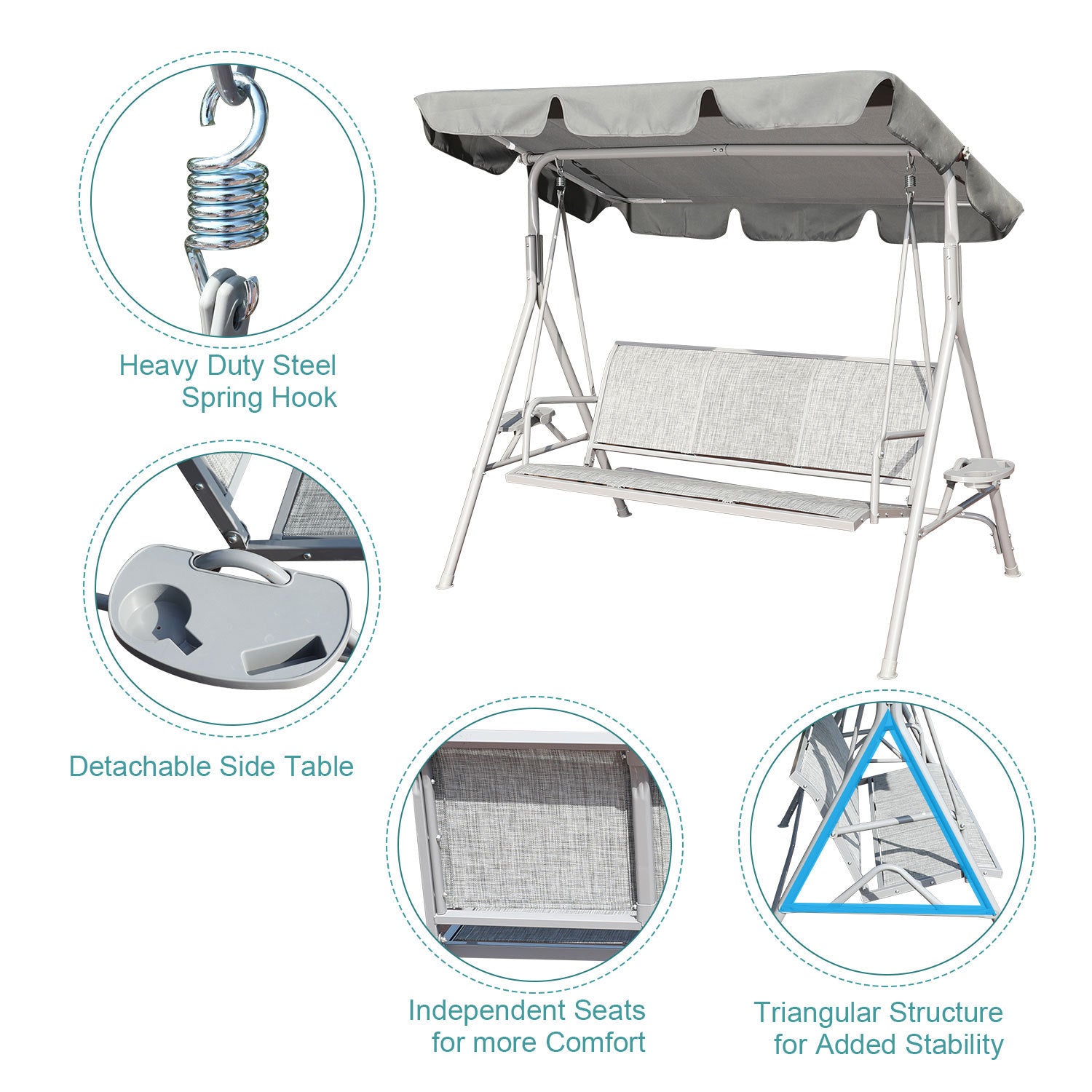 3-Person Outdoor Yard Textilene Swing Chair, Grey