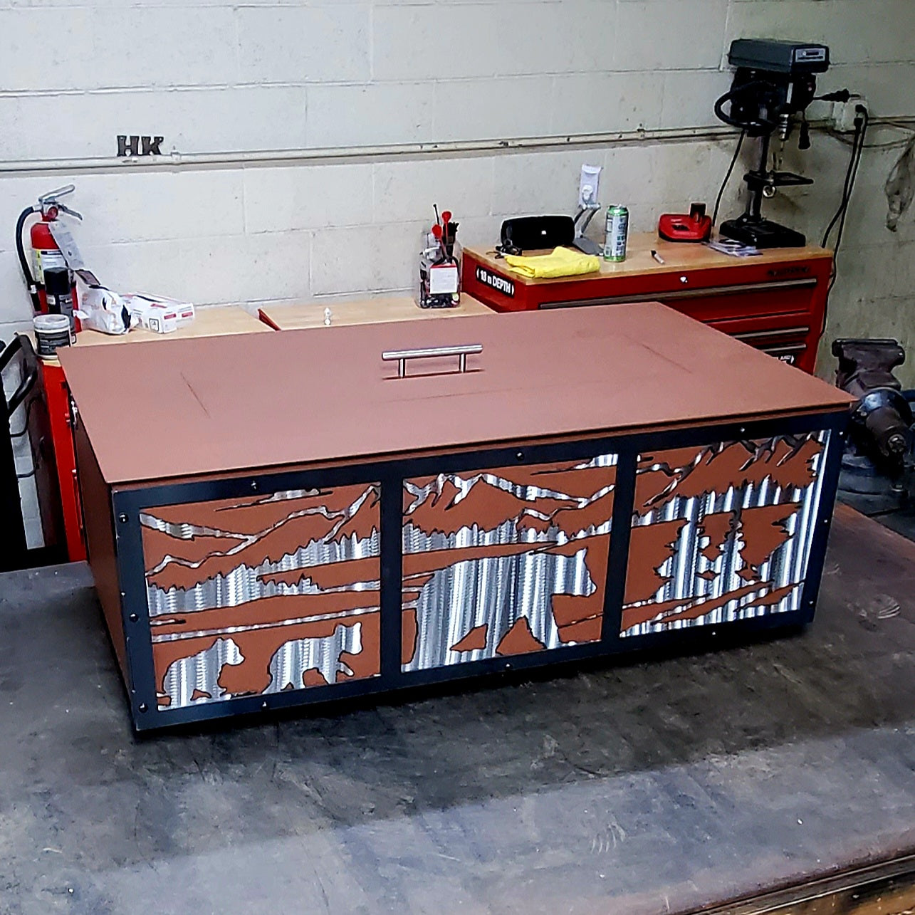 Inspired by the rugged beauty of Colorado’s historic Durango, this 24" x 42" rectangular fire pit features a striking bear and cubs motif that’s sure to turn heads. Crafted from American steel and finished with a hand-applied rust patina, The Durango doubles as a stylish coffee table—perfect for elevating your back deck and outdoor living.