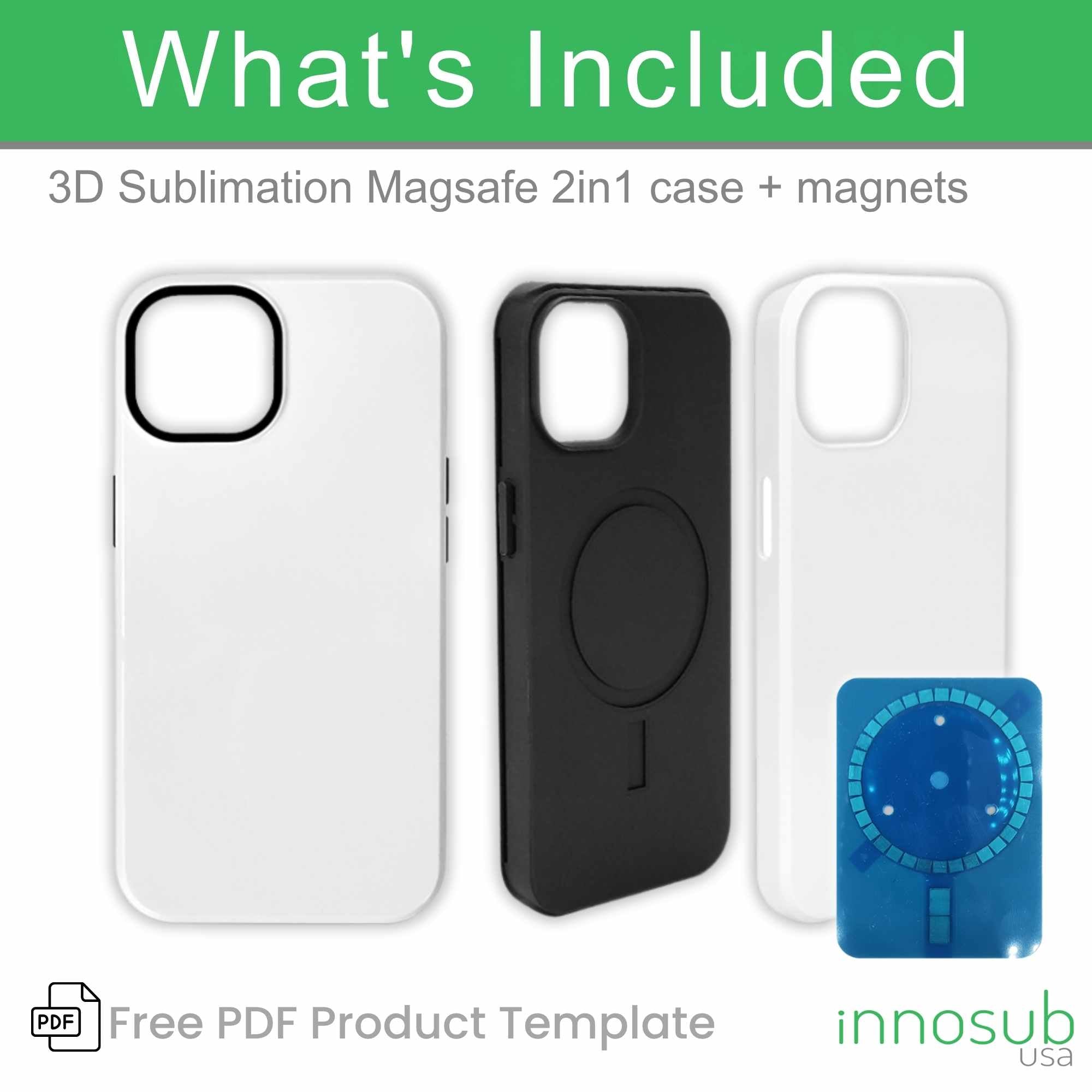 Sublimation Blanks 3D Magnetic Phone Cases for iPhone 12|13|14|15|16: 2-in-1 Tough Case