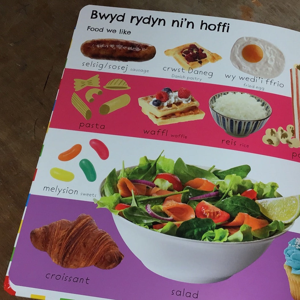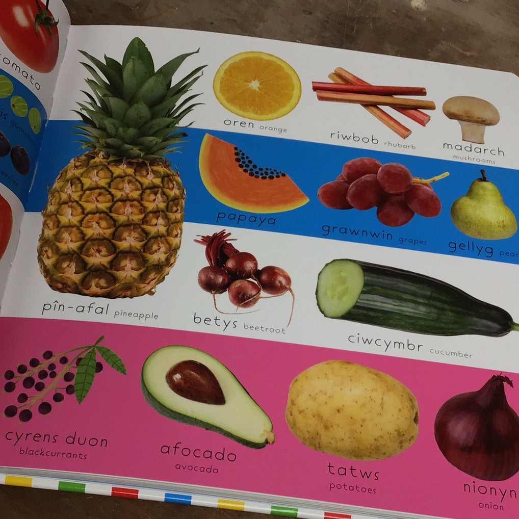 A lively book with colourful images presenting 1,000 simple, first words to young children, on themes such as Food, Animals, the Home, School, Family, Jobs and Around the World. A Welsh adaptation of My First 1000 Words.