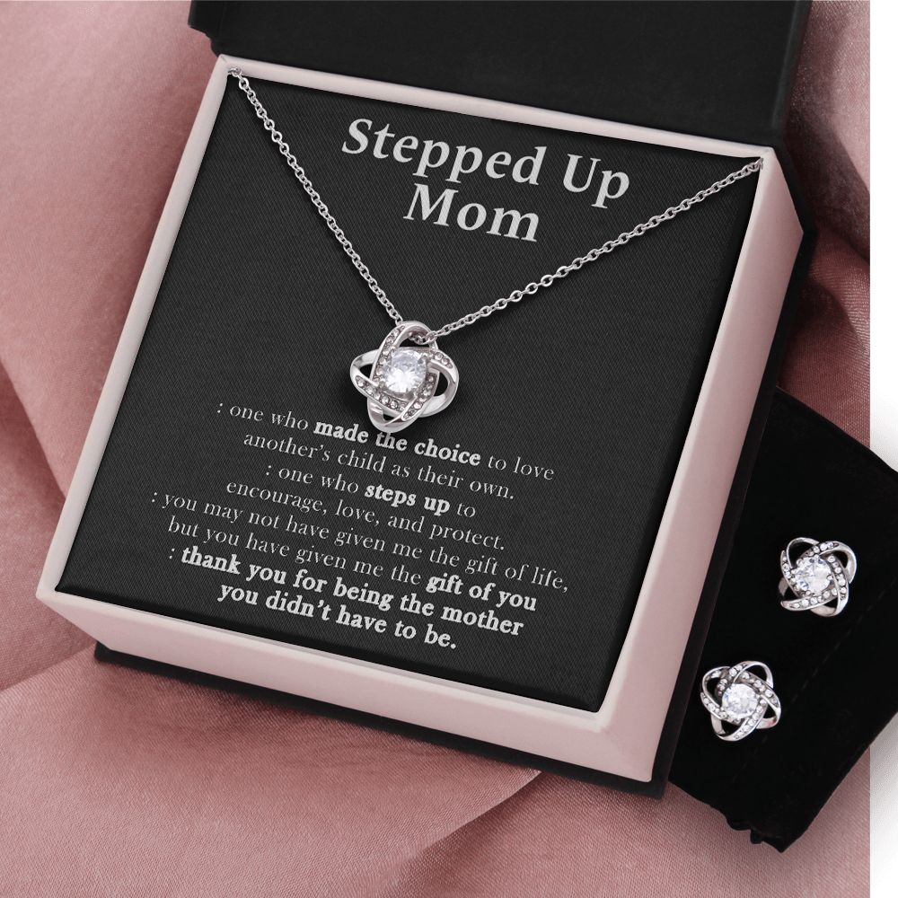 14K White Gold Stepped Up Mom Jewelry Set, To My Stepped Up Mom - One Who Made The Choice To Love,Mother's Day Necklace And Earring for Mom