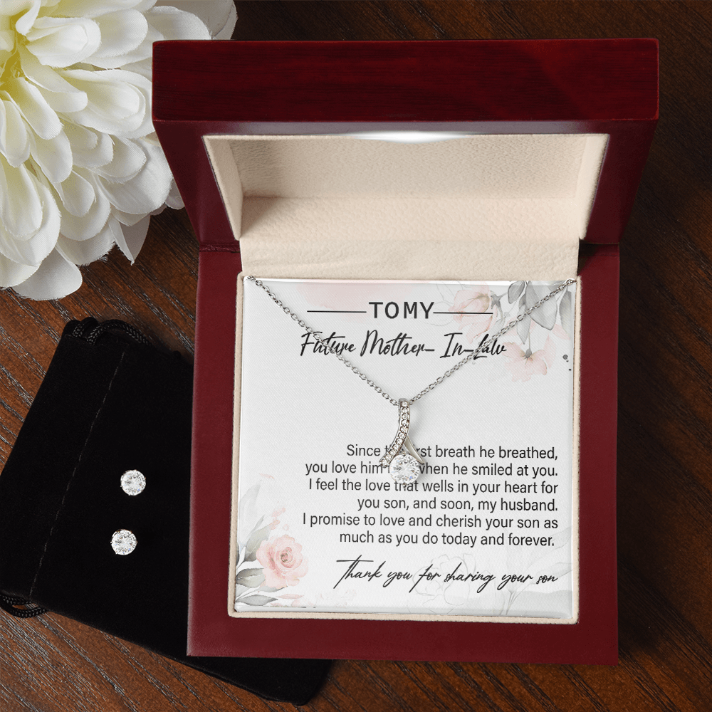 14K White Gold To my Future Mother in law Jewelry Set Gift, Mother's day gift for Future Bonus Mom Necklace And Matching Earrings Set