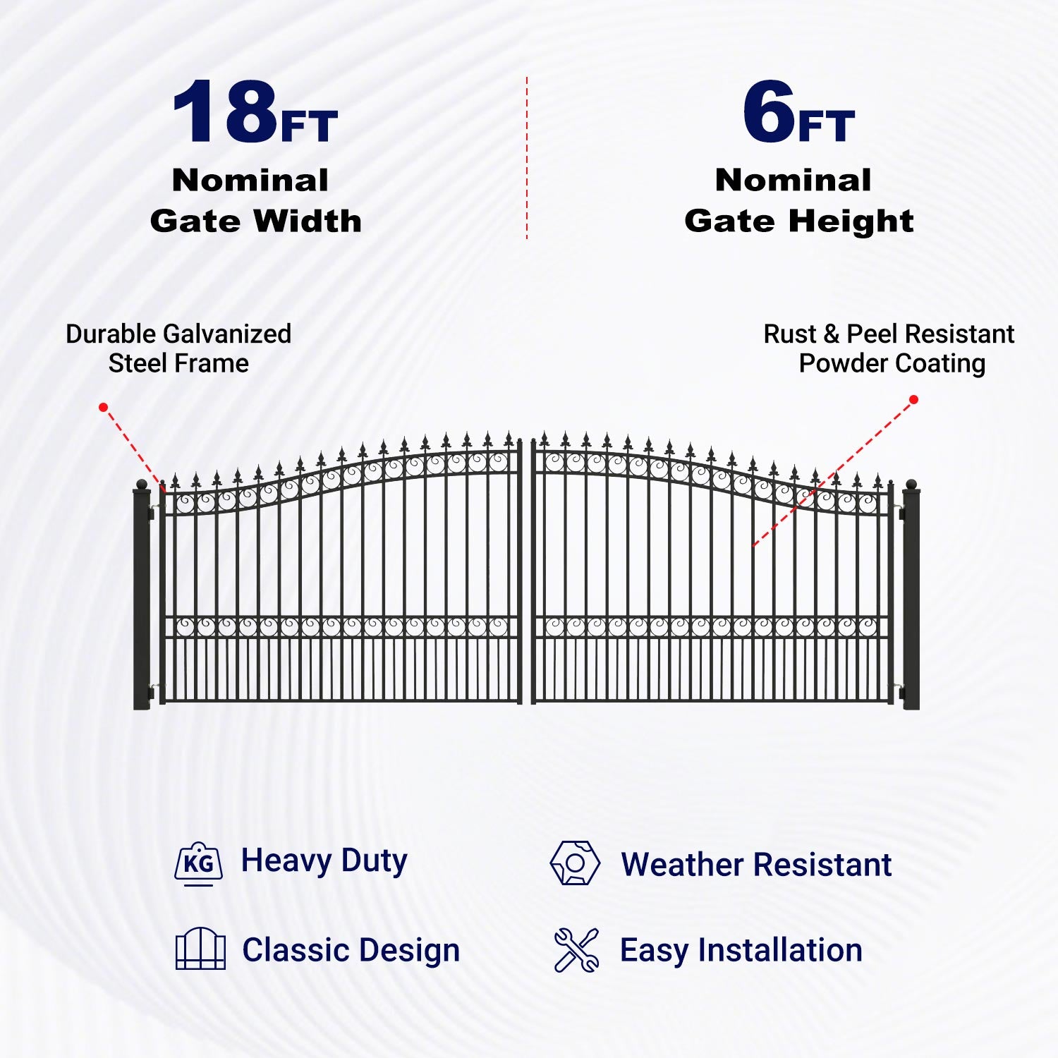 18x6 ft Steel Dual Swing Driveway Gate - LONDON Style