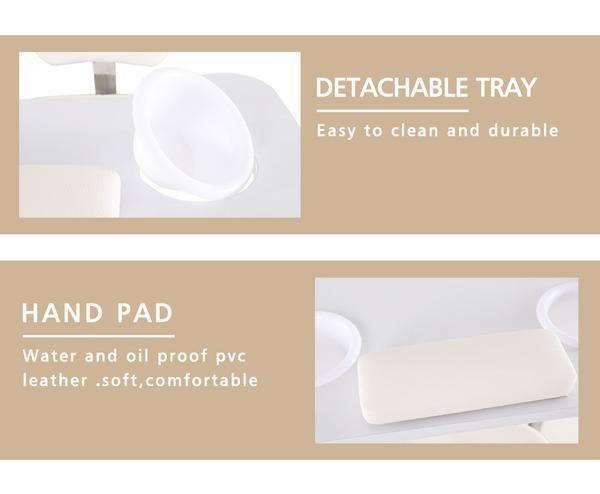 Do you have a home salon? A suite? Limited space or limited budget for your nail customers? No problem! The Compact Mobile Manicure Pedicure Chair Salon Station will be the choice for you! This portable Mani & Pedi 2 in 1 Nail Station is compact yet have spacious storage for you featuring with two spacious drawers under the seat. It also offers both seating for the client and the customer, and a service tray with two cup holders.