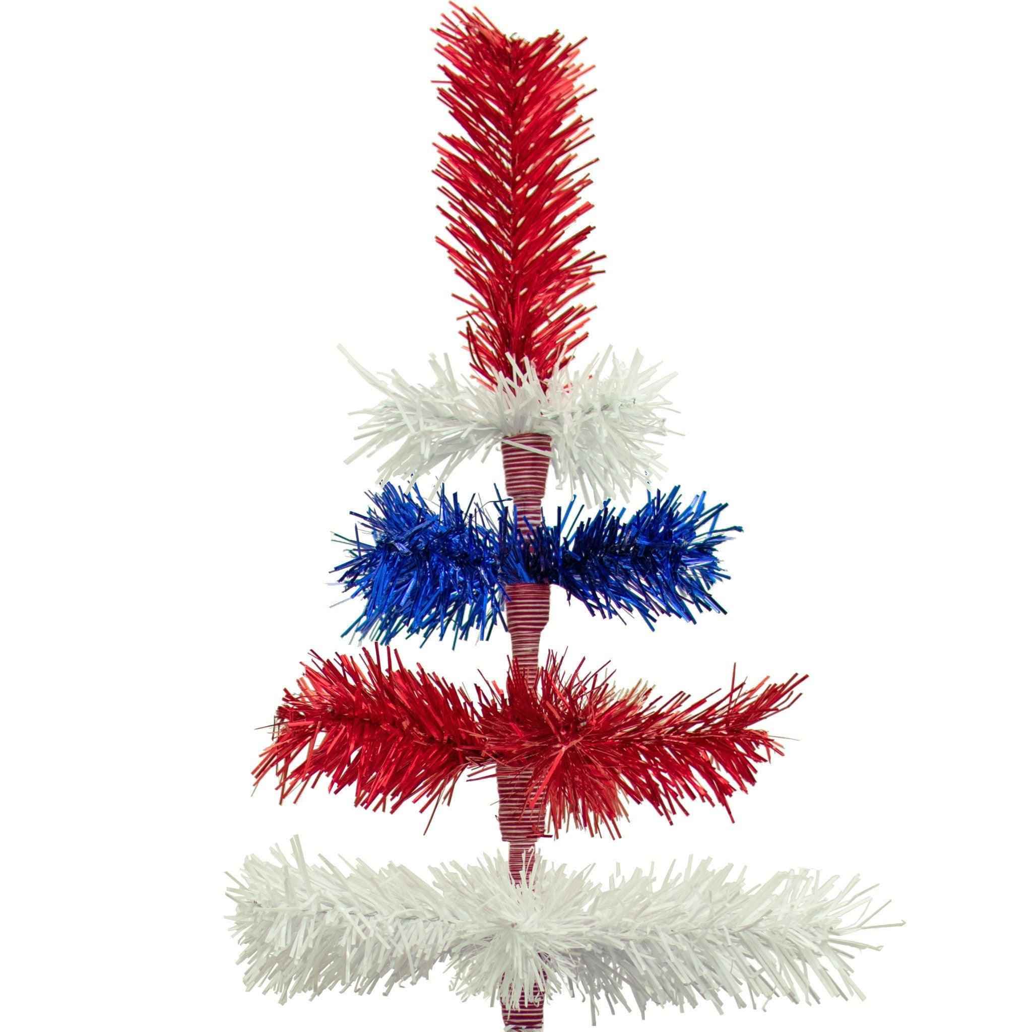 Red, White, and Blue Layered Tinsel Christmas Trees made by hand in the USA