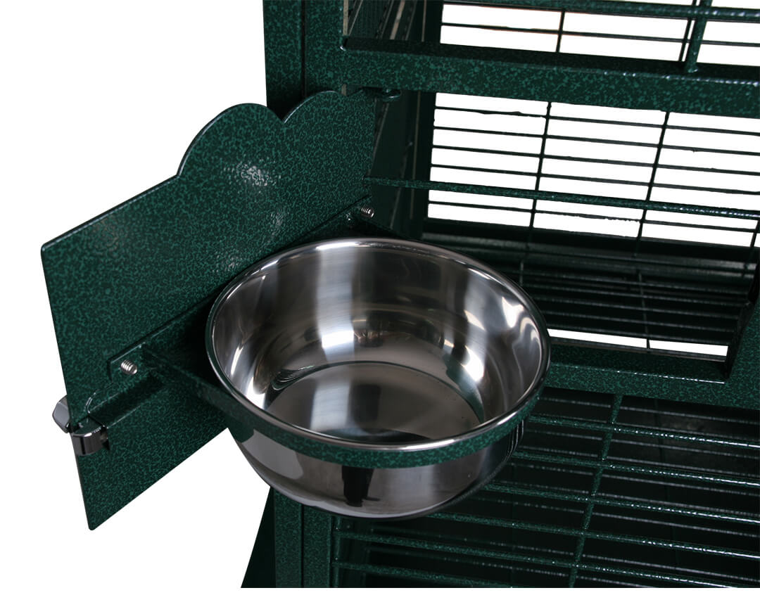 The inside of the cage also provides for plenty of living space. Your pet will enjoy climbing on the two sides of horizontally oriented rods, which act like ladders for easy use. You will appreciate the convenience of an extra large front entry door for easy placement and removal of your pet whenever you please. Also, the feeder doors each individually open to allow for easy food refills without having to contort your arms inside the cage. Each door is complete with a bird-proof lock to keep your feathered friend safe and sound.