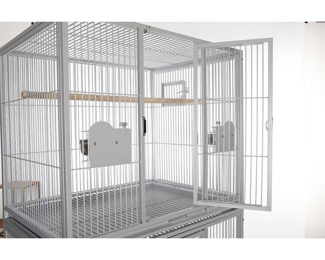 The double-sized cage offers larger species all the room they require, as well as a wide range of entertainment options and ideal living health. Your bird's safety is never in doubt thanks to front doors and feeder doors that are bird-proof. Your elegantly colored cage is also tested to be completely non-toxic for birds.