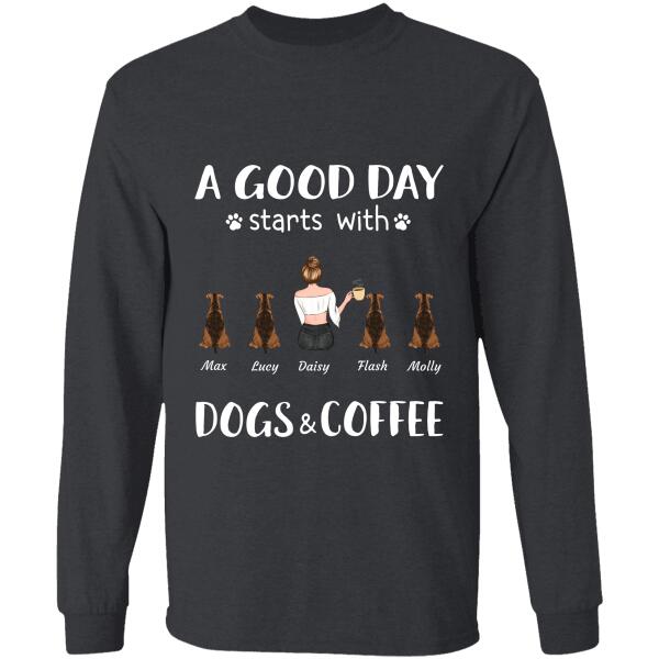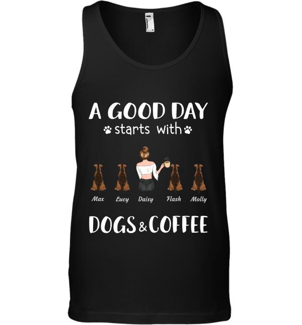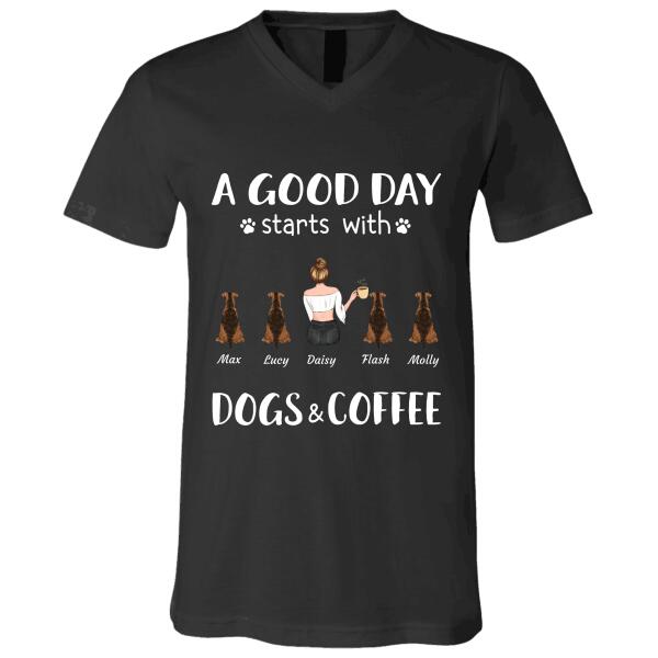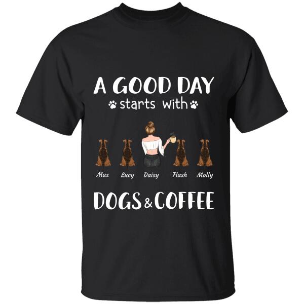 "A good day starts with dogs/cats & coffee" personalized T-Shirt
