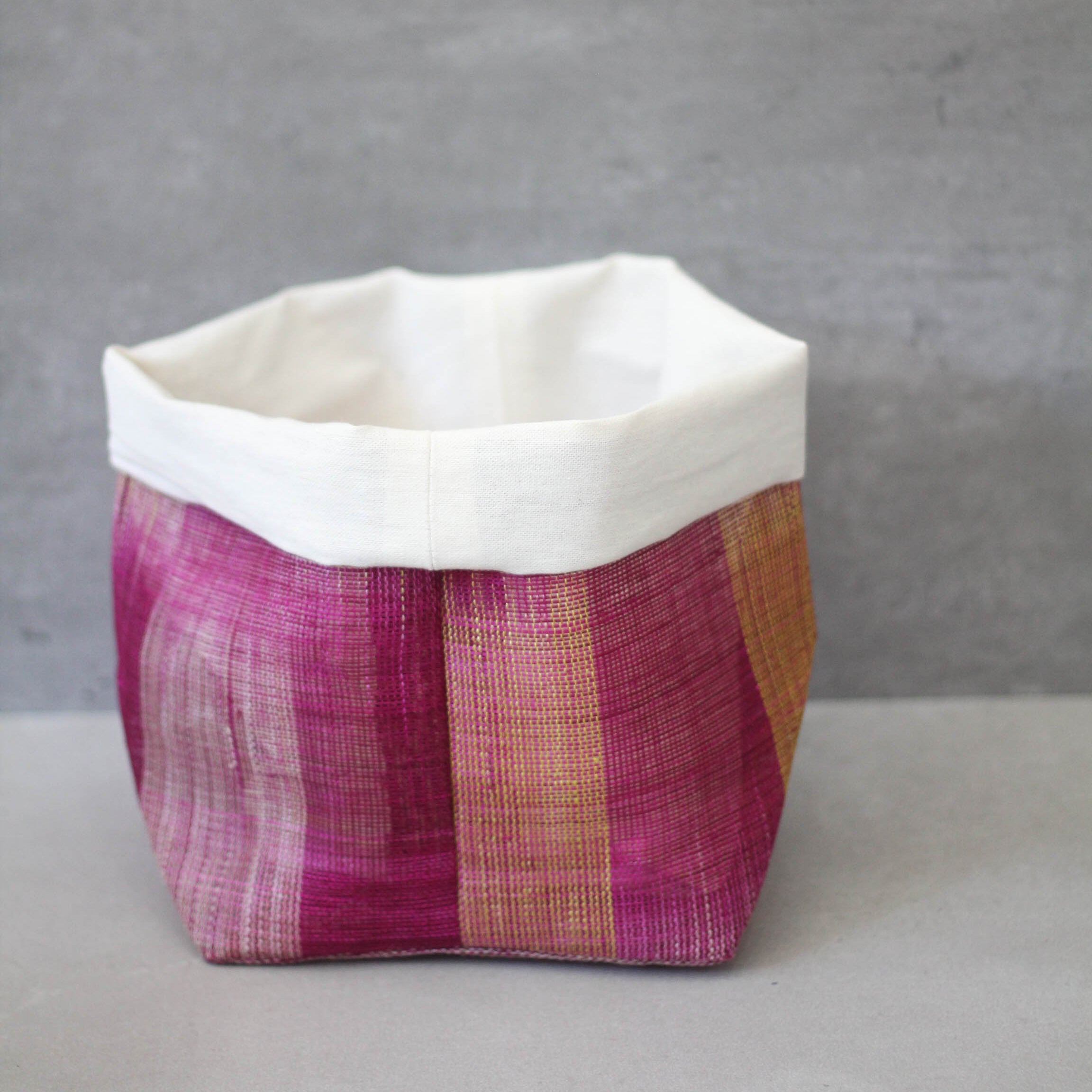 An essential for keeping any corner of a home organized, the Abaca Bucket is made of abaca pinanggabol from the Daraghuyan Tribe in Dalwangan Bukidnon. Abaca pinanggabol is handloomed natural textile and dyed in beautiful ikat patterns using plant pigments. The Abaca Bucket comes in three sizes: Small, Medium, and Large.