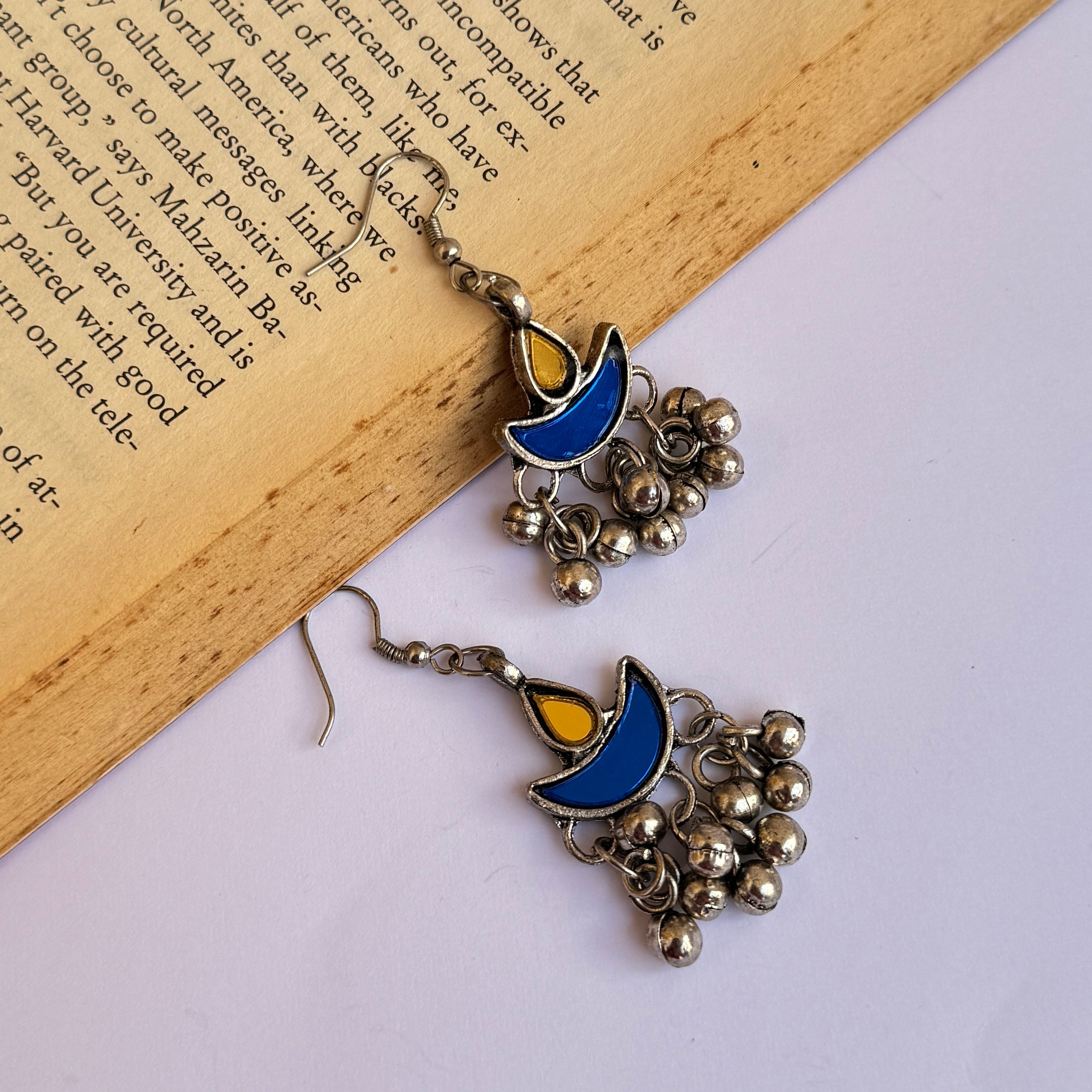 Afghani Glass Dangler Earrings are stunning oxidized pieces featuring intricate glass beadwork. Inspired by Afghan craftsmanship, these earrings typically boast vibrant colors and intricate designs, adding a touch of ethnic elegance to any ensemble.