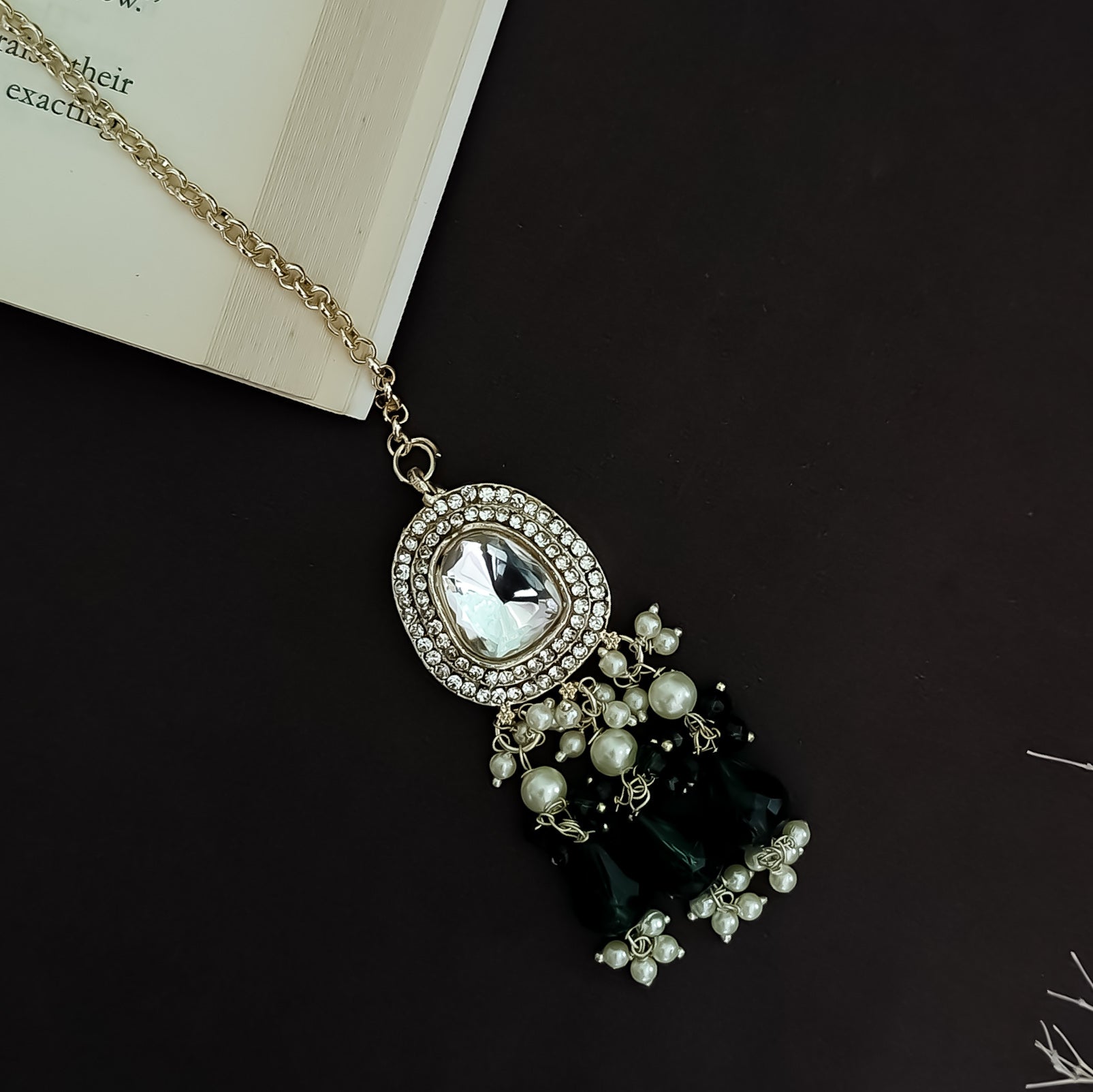 The Anika Necklace sounds exquisite! With its polki design and pearls adorning the bottom, it undoubtedly adds a touch of elegance and sophistication. Moreover, the inclusion of earrings and a mangtika completes the ensemble, ensuring a cohesive and stunning look. Such traditional jewelry pieces are often cherished for their timeless beauty and cultural significance.