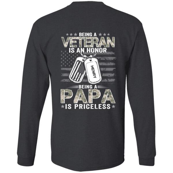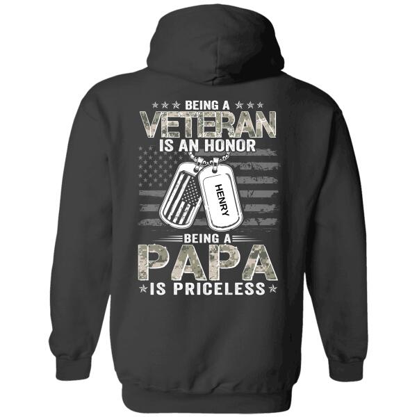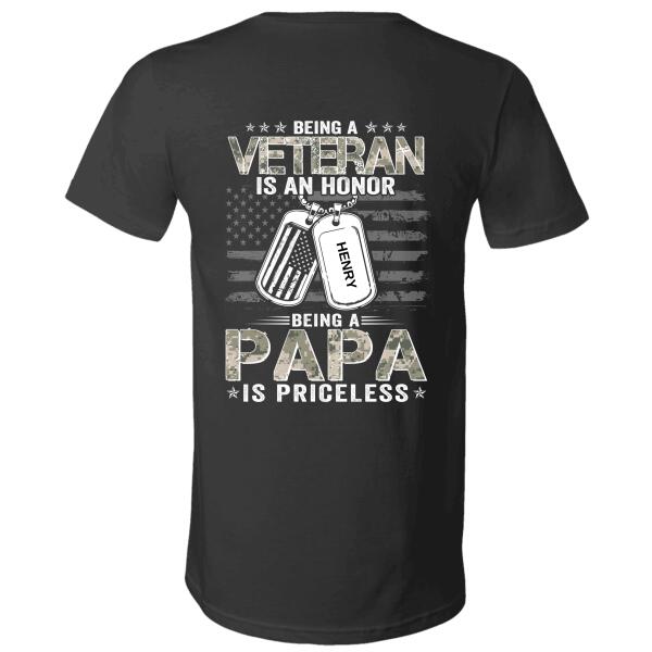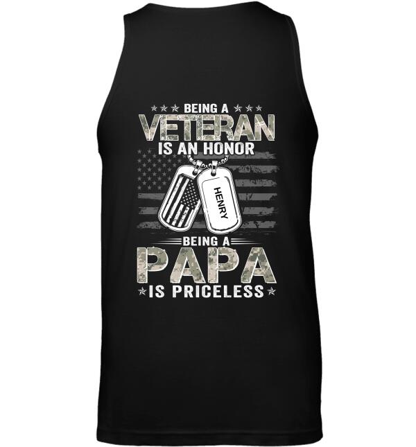 "Being A Veteran Is An Honor Being A Papa Is Priceless" name personalized T-shirt